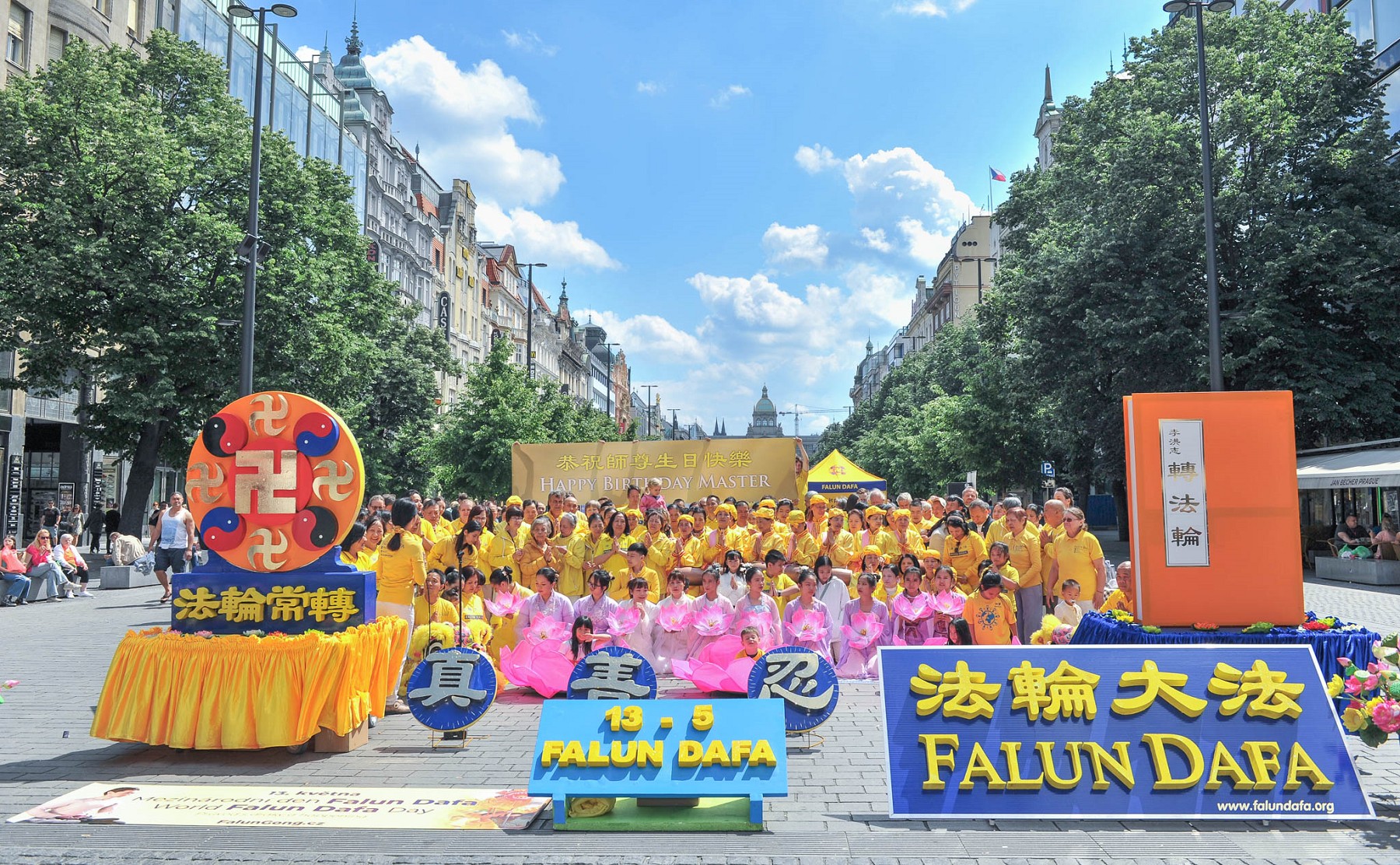 ![]() 图13:法轮功学员齐聚在瓦茨拉夫广场,祝贺师父生日快乐。 |