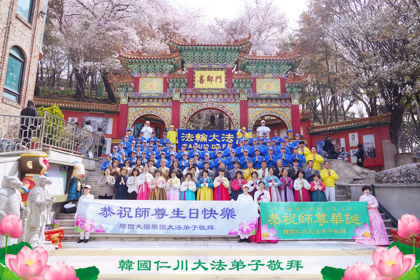 图31:韩国仁川大法弟子恭祝师尊生日快乐。 |