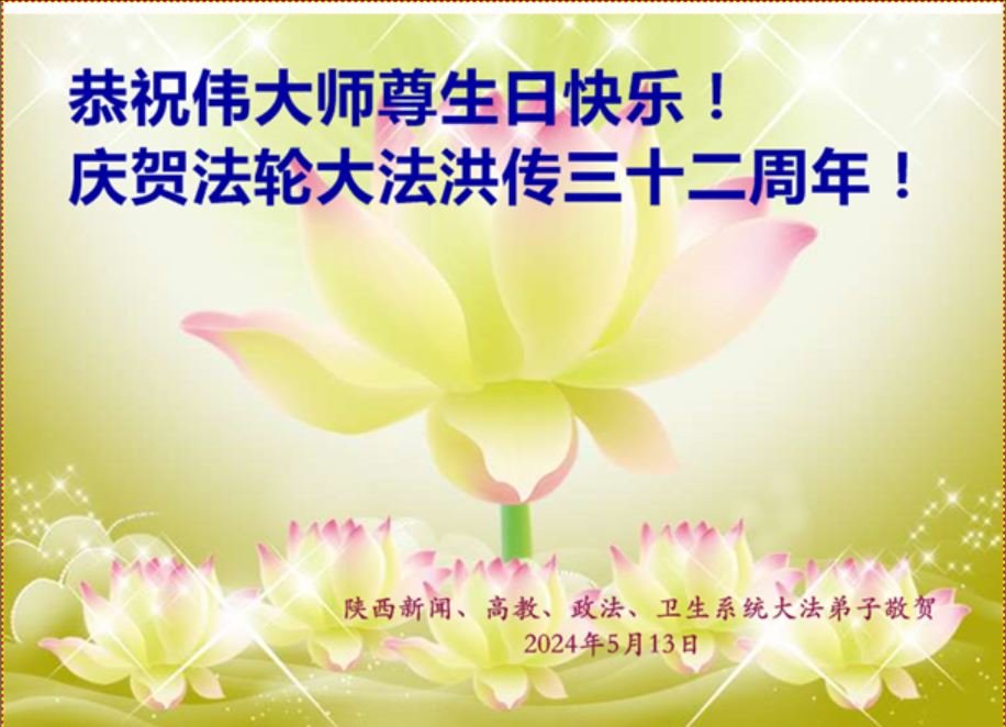 今年“五·一三”节日期间,中国大陆三十多个省、自治区、直辖市的大法弟子纷纷发送征文、贺卡,向尊敬的李洪志师父表达诚挚的问候,恭贺师尊生日快乐。大法弟子们表示一定不负师恩,精進实修,广救众生,盼望早日与师尊团聚。