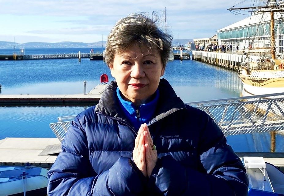 谢珍妮(Jenny Seah)修炼法轮功已经二十六年了。一九九八年十月的那天早晨,她醒得异常早,大约是五点钟。醒来第一个念头就是想去看看当地的街边市场。她在这里住了几年,再过几个月就要离开中国了。从公寓一楼大厅出来的那一刻,她惊讶地发现公寓前院有很多法轮功学员在晨炼。以前她通常不会起这么早,所以也没有见过。她好奇地加入其中,跟着他们的动作炼了起来,忘记了自己本来是要去市场的。