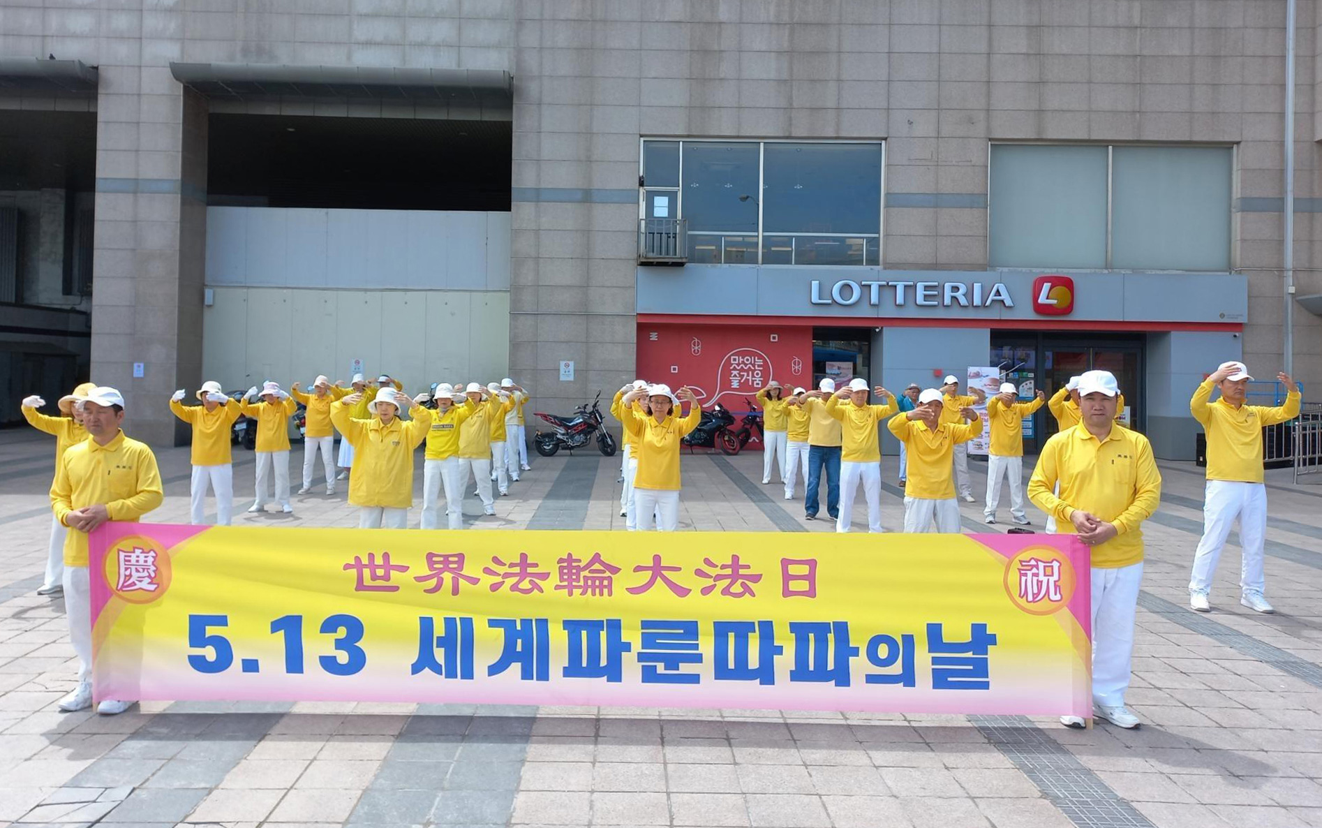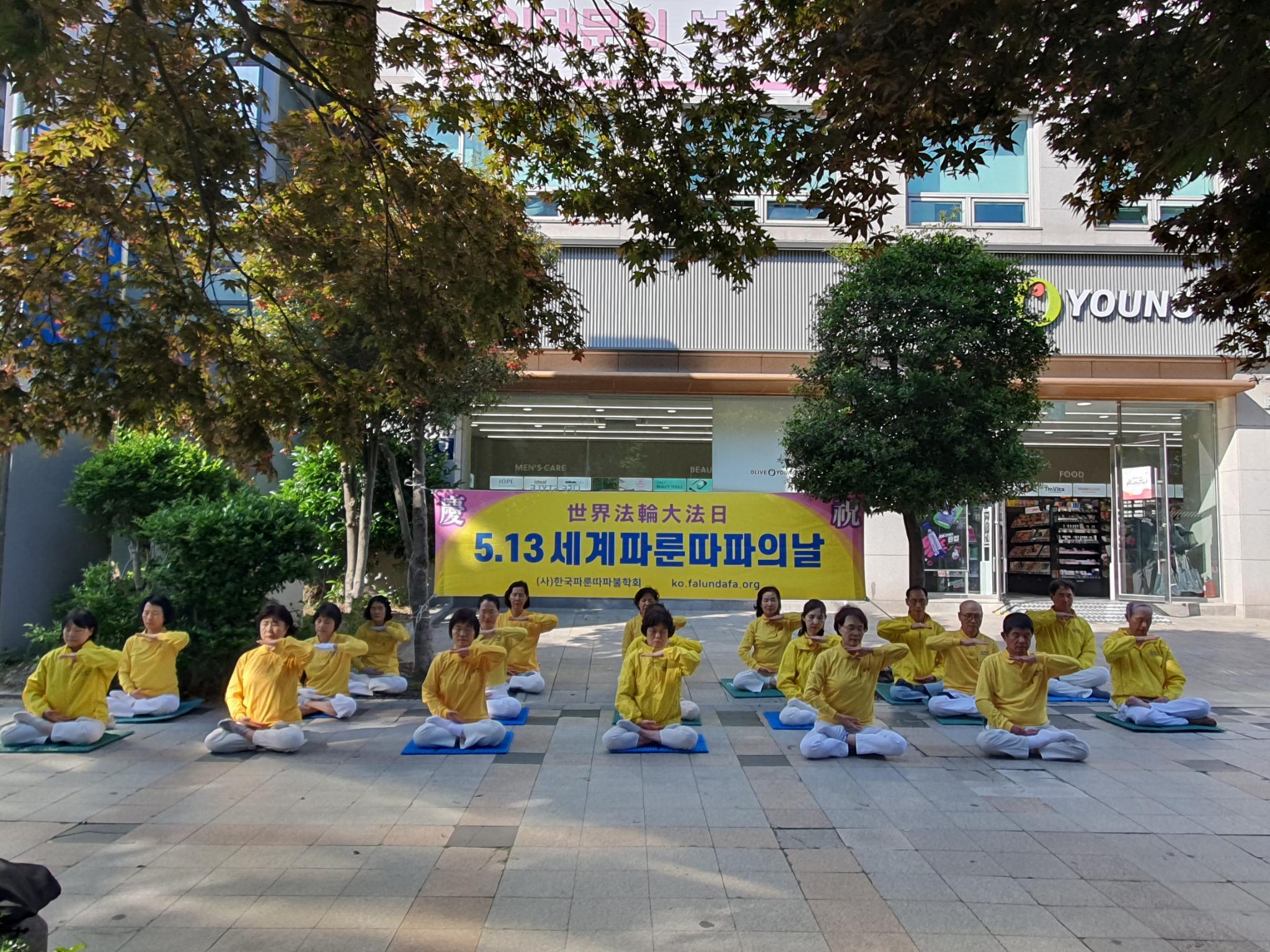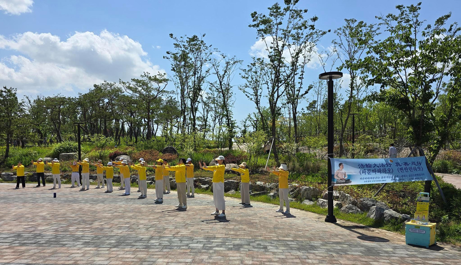 同一时间,韩国其它地区也举行集体炼功活动。五月十二日当天,在水原、安养、安山、一山、昌原、釜山、大邱、蔚山、光州、大田、清州、天安、金海、江原、光州、湖南等地的法轮功学员们在各地举行了集体炼功活动。