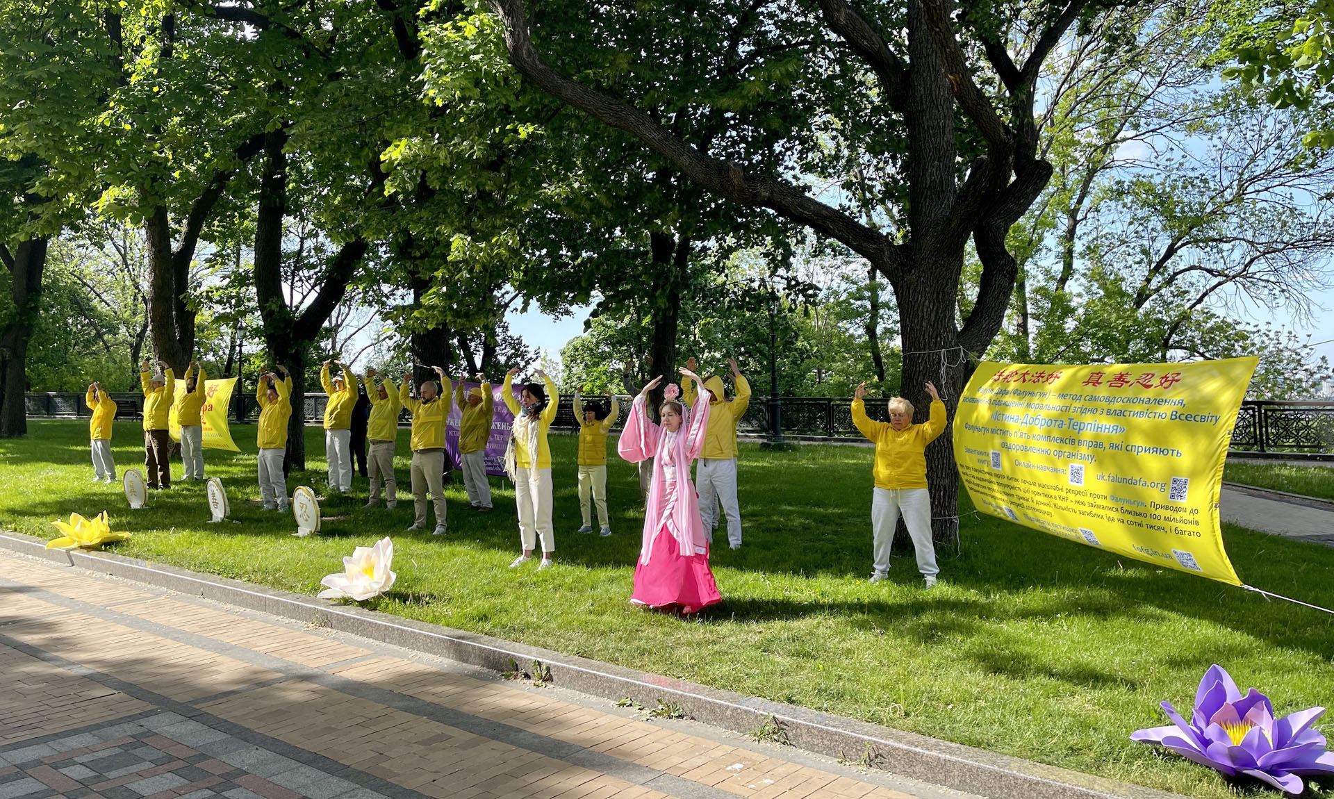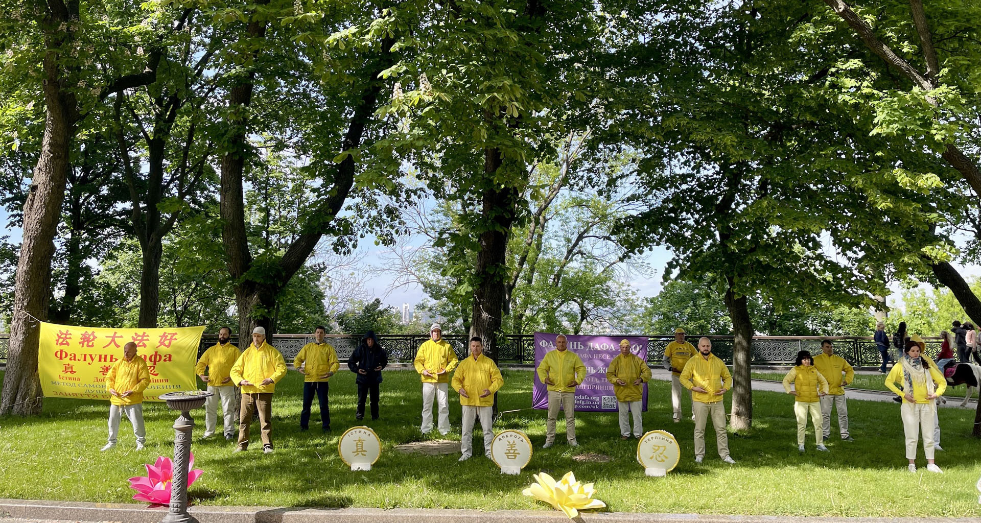 这一天也是法轮功创始人李洪志先生七十三岁华诞,对于乌克兰的法轮功学员来说,一年一度的世界法轮大法日是一个感恩师尊的日子,他们中的许多人已经修炼十五年以上。大家恭祝师父生日快乐,也希望借这次机会与他人分享法轮大法的美好。