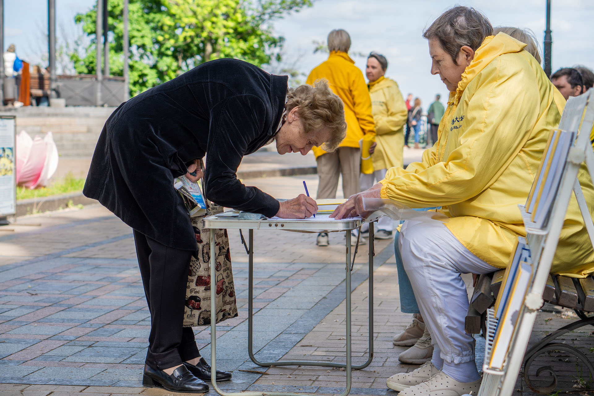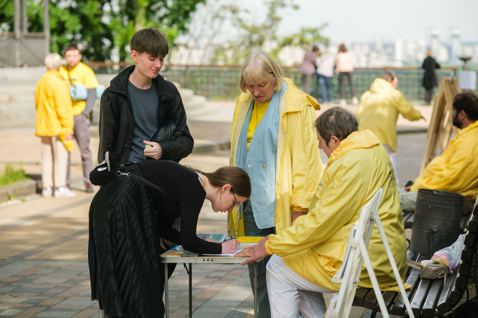一些路人感谢佐里亚娜让他们知道了法轮功,让人们在面对困难时能清除不好的思想和压力。许多人在请愿书上签名,呼吁中共停止对法轮功的迫害。
