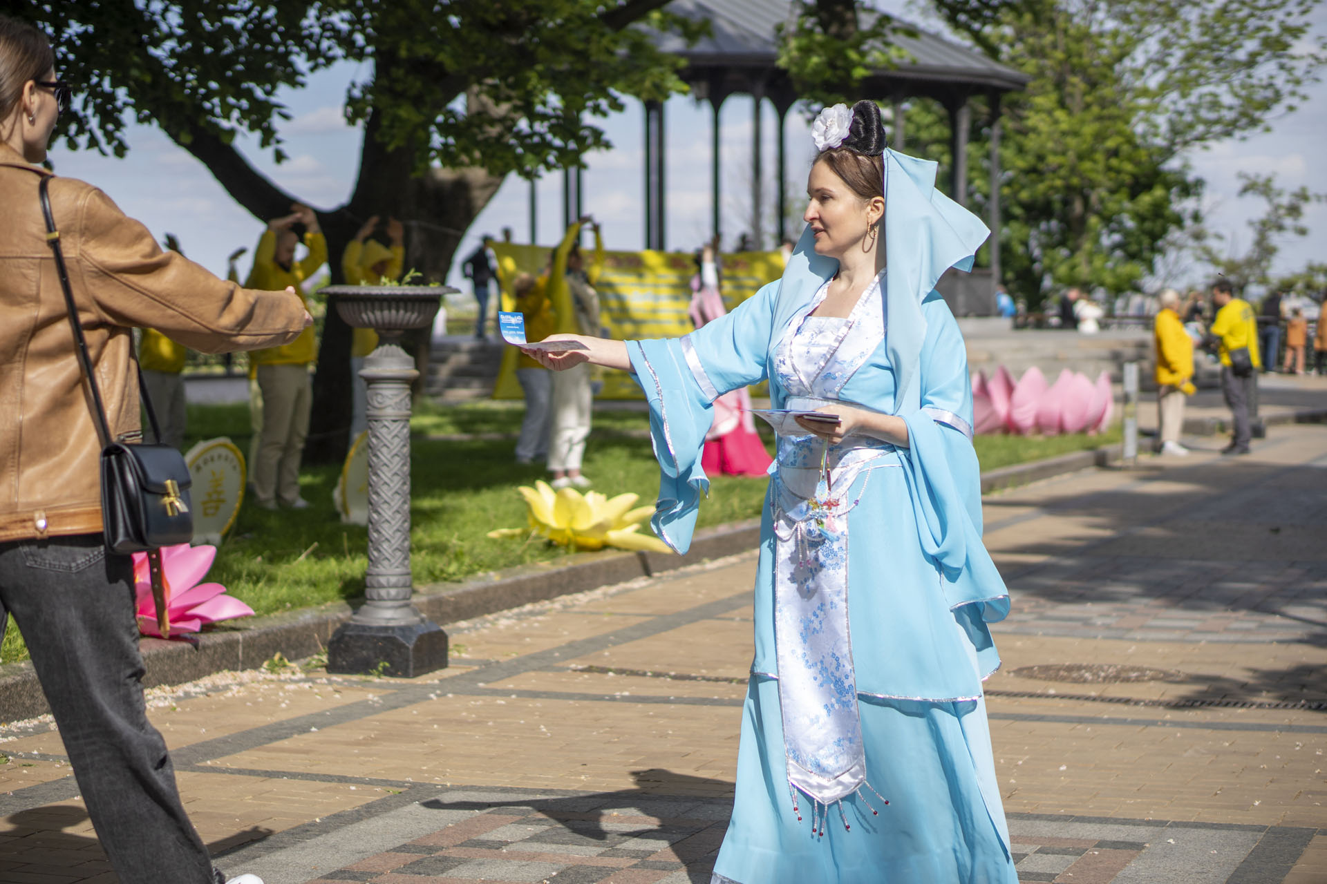 在当天的活动中,法轮功学员佐里亚娜(Zoryana)身着仙女装,向路人介绍法轮功,并分发真相资料。她得到了很多热烈的反馈,一些民众表示要去法轮大法网站进一步了解一下。