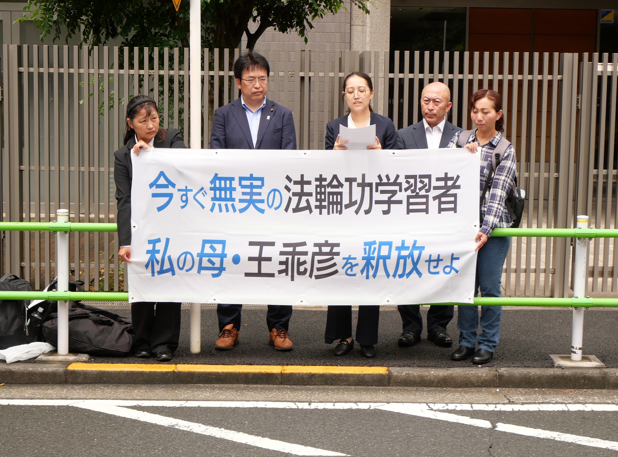 丸山治章先生说:“四月初,有报道说在中国大陆包括王乖彦女士在内的四名法轮功学员被绑架了。听到这个消息后觉得不能坐视不管,决心前来抗议。无辜的母亲在毫无理由的情况下被带走,之后就杳无音信,这是让人难以想象的。在听张一文宣读公开信的时候,虽然我听不懂汉语,但是我能听出她的苦楚和绝望。我想要马上协助解决的心情更加强烈了”。