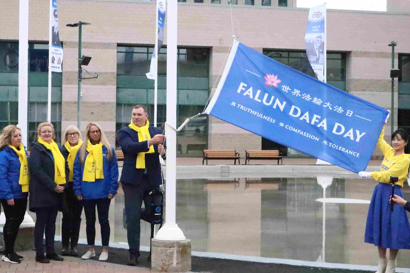 四月二十九日至五月十三日,从东到西有十一个加拿大城镇通过升旗来庆祝法轮大法日,包括安省的巴里市(Barrie)、布莱顿市(Brighton)、阿默斯特堡市(Amherstbury)、奥里利亚市(Orillia)、奥兰治维尔市(Orangeville)、斯库格镇(Scugog)、布洛克市(Brock)、剑桥市(Cambridge)、康沃尔市(City of Cornwall)、萨斯喀彻温省的萨斯卡通市(Saskatoon)以及卑诗省温哥华岛的纳奈莫市(Nanaimo)。市长们还为法轮大法颁发褒奖令,宣布“法轮大法日”。