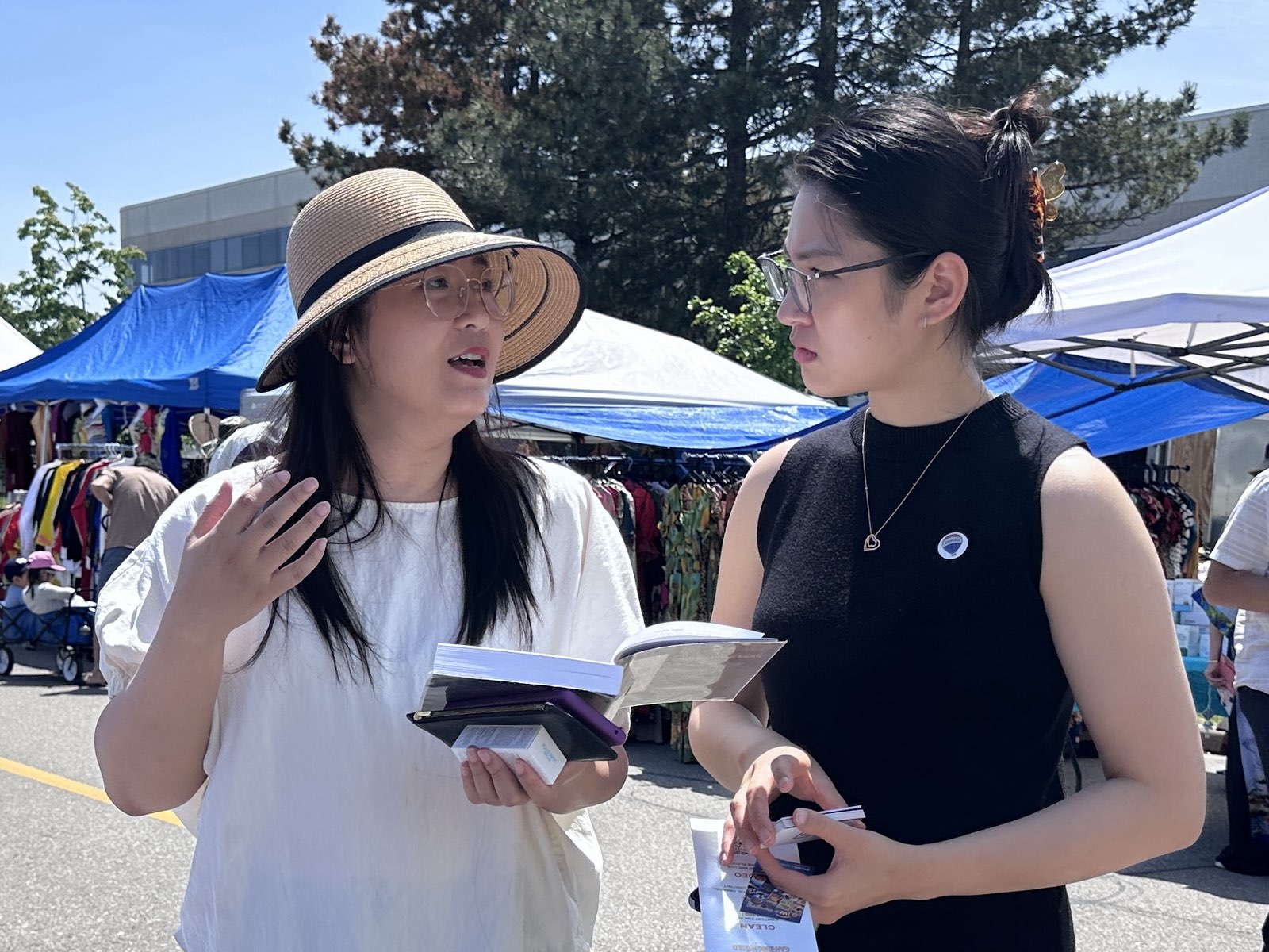 ![]() 图1~4:民众纷纷前来了解大法信息 |