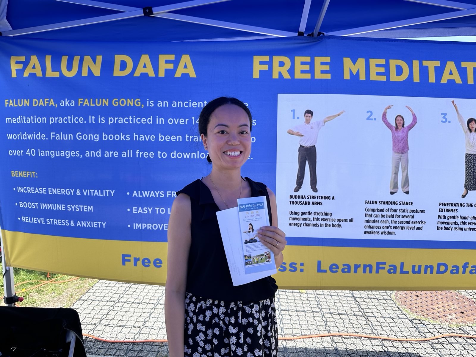 黄薇(Vy Hoang)从事地产行业,她看到大法展位出现在西贡公园庆祝活动上,感到很惊讶。她告诉学员:“十五年前,我还在越南上小学,我看到过一些法轮功学员在路边炼功,但一夜之间,这些人就不见了。后来我听到一些传言,让我对法轮功产生了恐惧心理。”