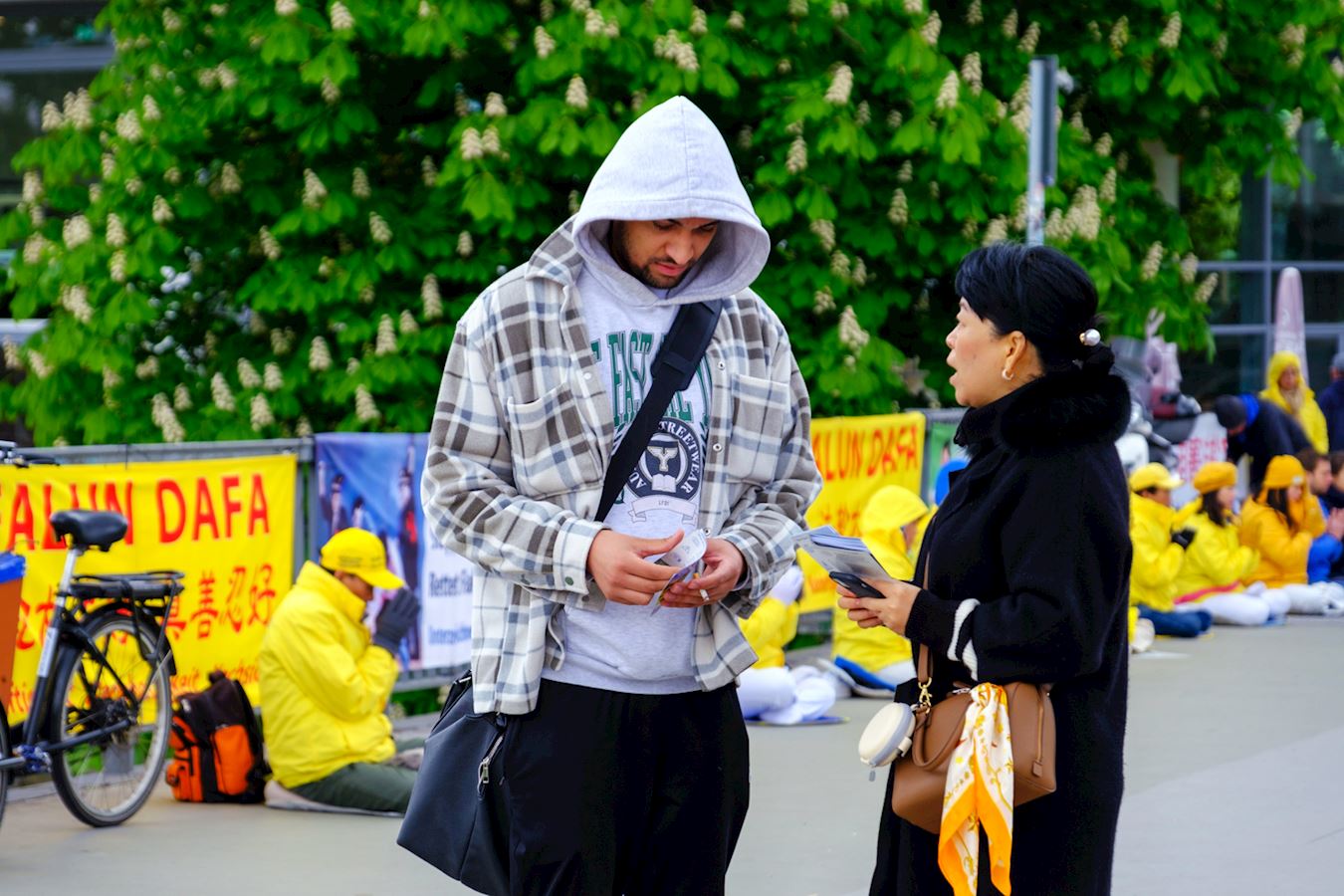 德国法轮功学员本哈德(Bernhard)表示:“今天是四·二五上访二十五周年纪念日,每年的这个日子,我都会来中领馆参加和平抗议活动,揭露中共对法轮功学员的迫害。我希望迫害尽早结束,在中国可以自由修炼。”他认为对中国人来说,“最重要的是能够得到应有的信息,能了解法轮功真相和中共迫害法轮功的事实。”