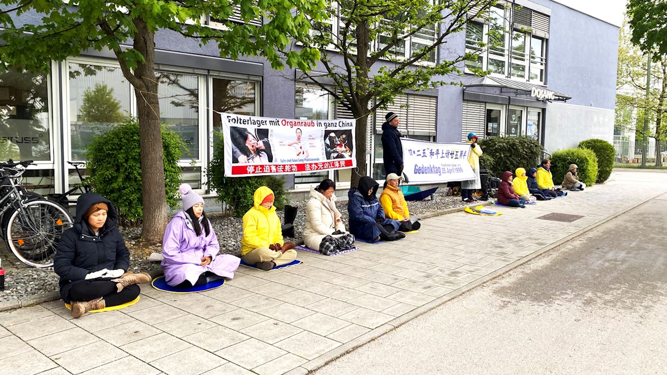 ![]() 图6~7:二零二四年四月二十五日,法轮功学员在德国慕尼黑中领馆前纪念四·二五。 |