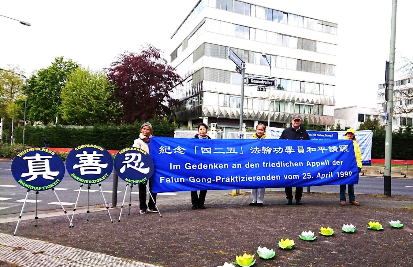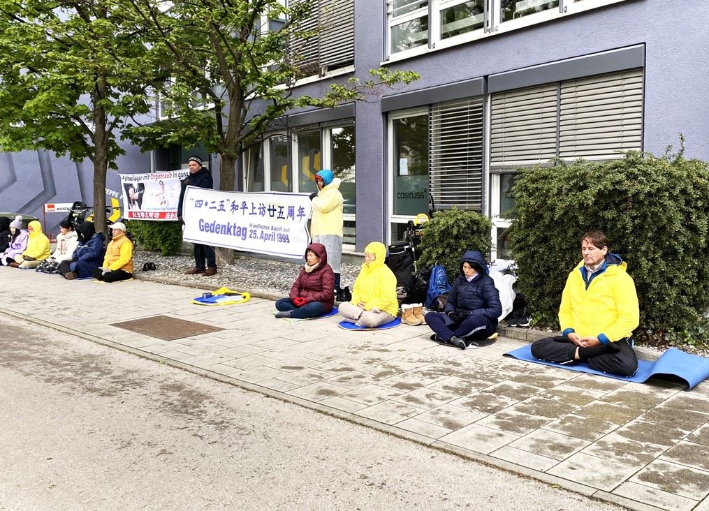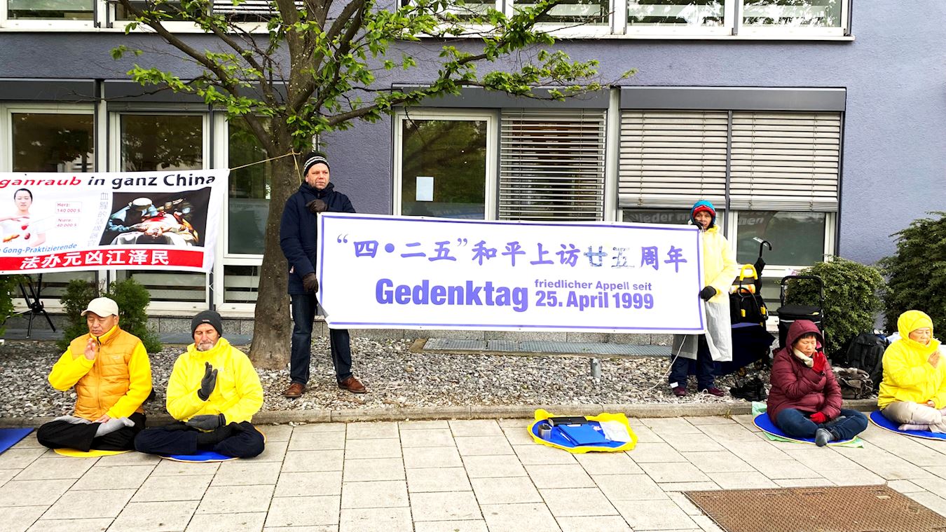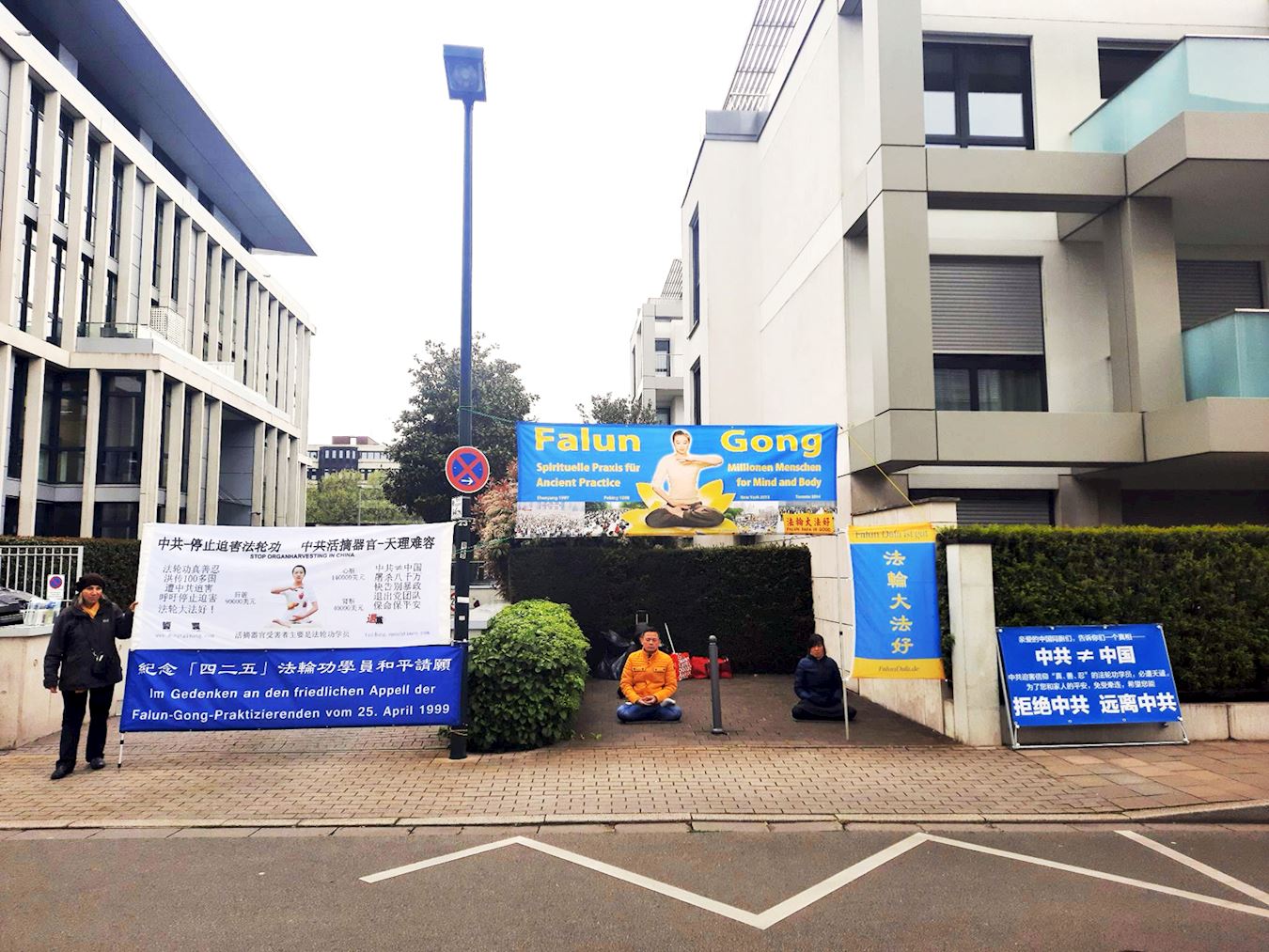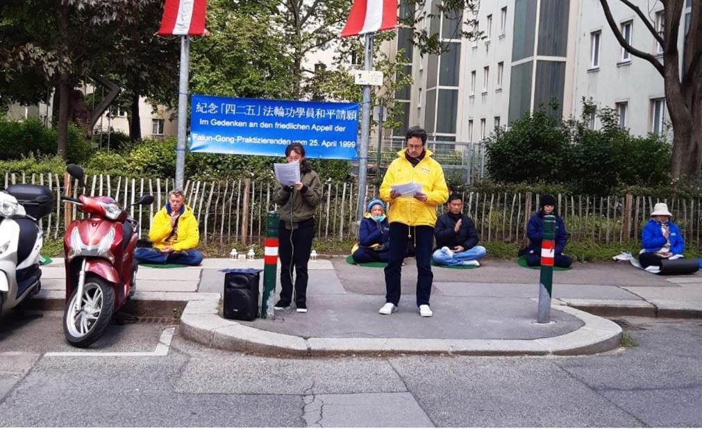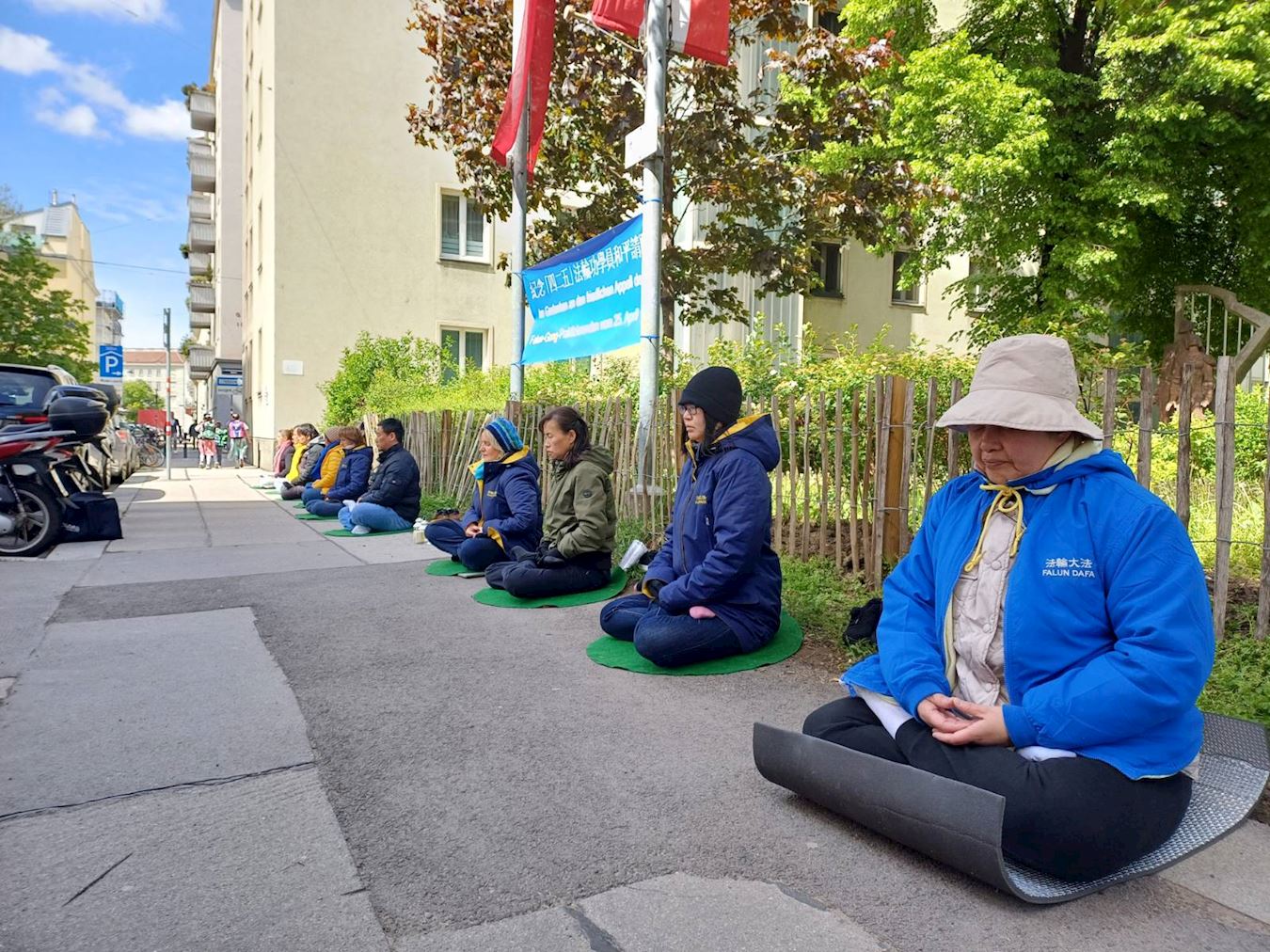 当天,奥地利部分法轮功学员聚集在首都维也纳中使馆前,纪念四·二五和平上访二十五周年。