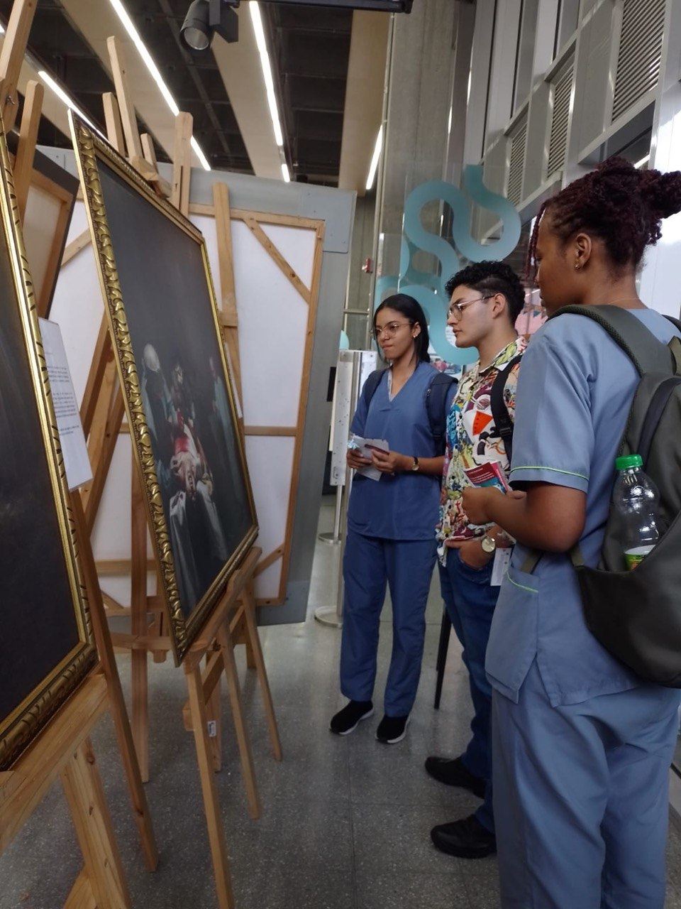 最后,心理学专业的学生莎朗·贝坦库尔(Sharon Betancur)、胡安·卡洛斯·洛艾萨(Juan Carlos Loaiza)和凯瑟琳·古兹曼(Katherin Guzmán)选择在《活摘器官》这幅作品前合影,因为对他们来说,这幅作品因其残酷的题材而引起深层的震撼,但同时也展现了深刻的现实。
