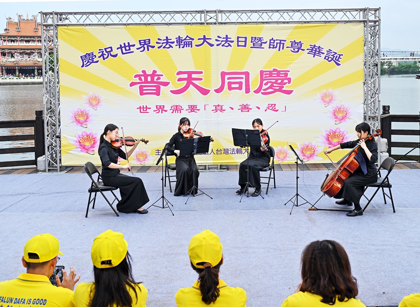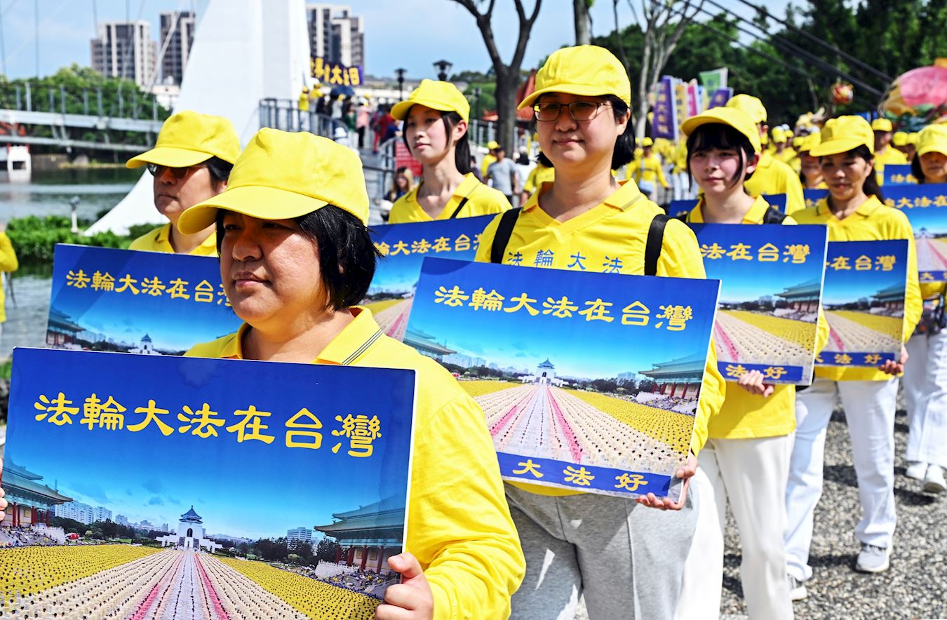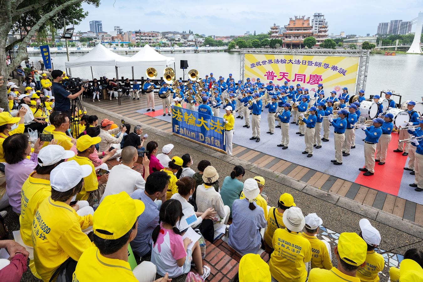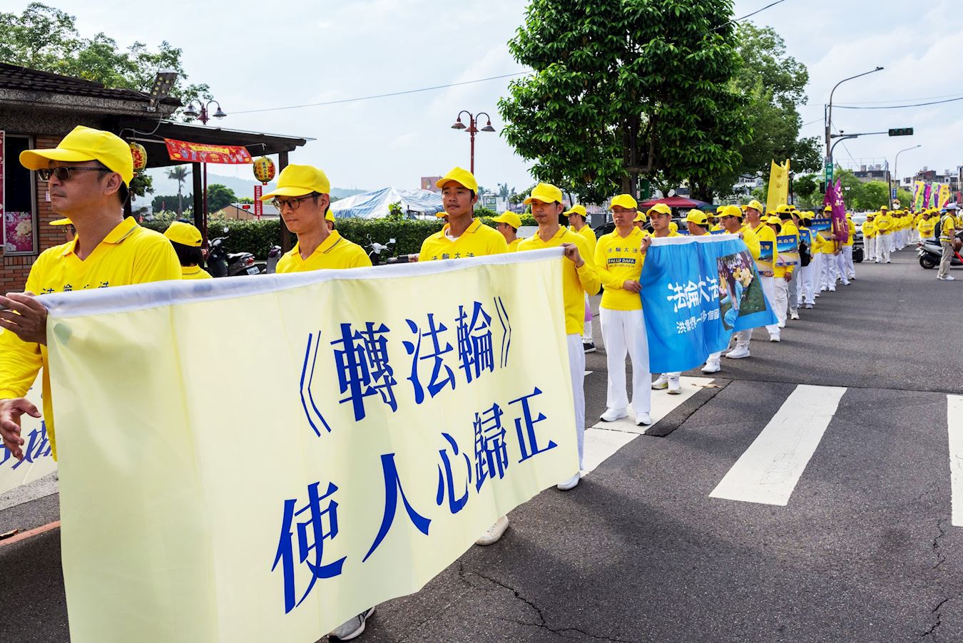 当天,学员们向师父表达了他们修炼大法后身心受益的感恩之心,也希望通过法轮大法天国乐团的游行、功法表演、音乐会等活动,向龙潭当地民众和旅客传递福音,希望有缘世人能了解法轮大法的美好。