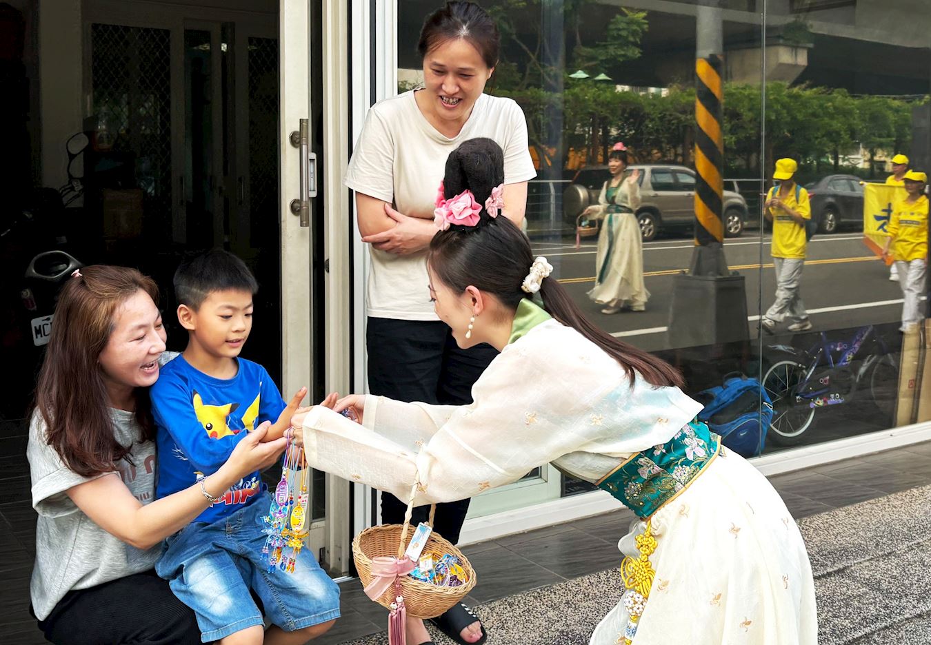 银楼的杨老板,第一次看到法轮功游行队伍,让他想起在日月潭的时候,看到法轮功学员在景点用展板展示法轮功弘传世界以及被中共打压的消息。他认为,“台湾比较包容,各种信仰只要是好的,都可以被接纳,跟中国大陆比起来,好很多。”