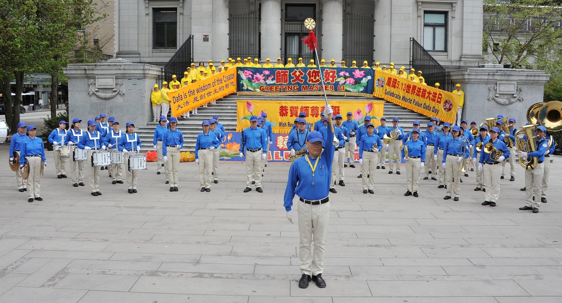 ![]() 图1:温哥华法轮功学员在市中心艺术馆南侧广场,庆祝5.13世界法轮大法日,并恭贺法轮功创始人李洪志大师华诞。 |