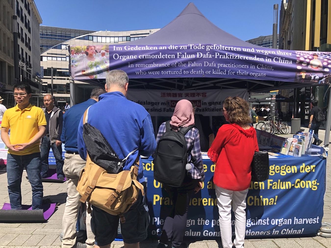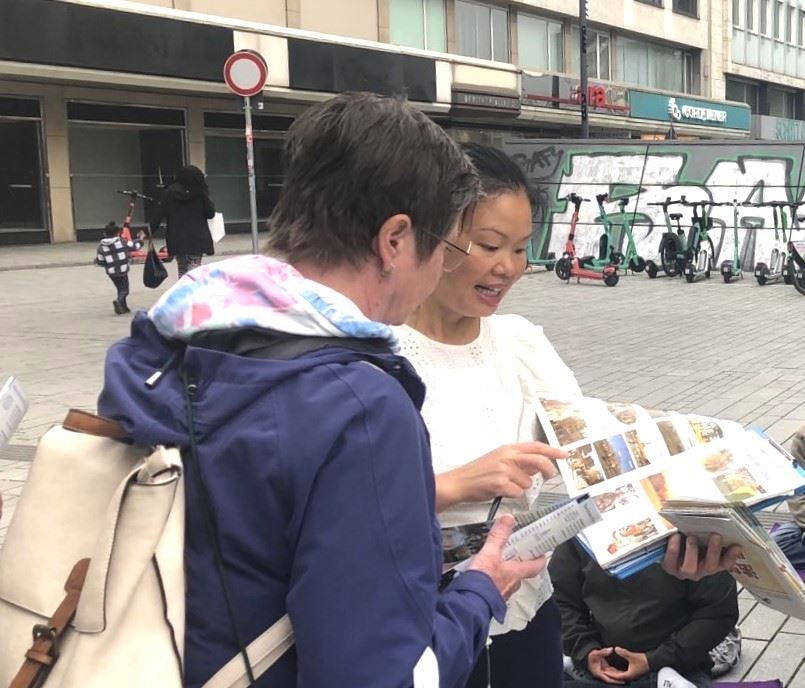 ![]() 图1:二零二四年六月九日,民众在杜塞尔多夫真相点为反迫害签名。 |