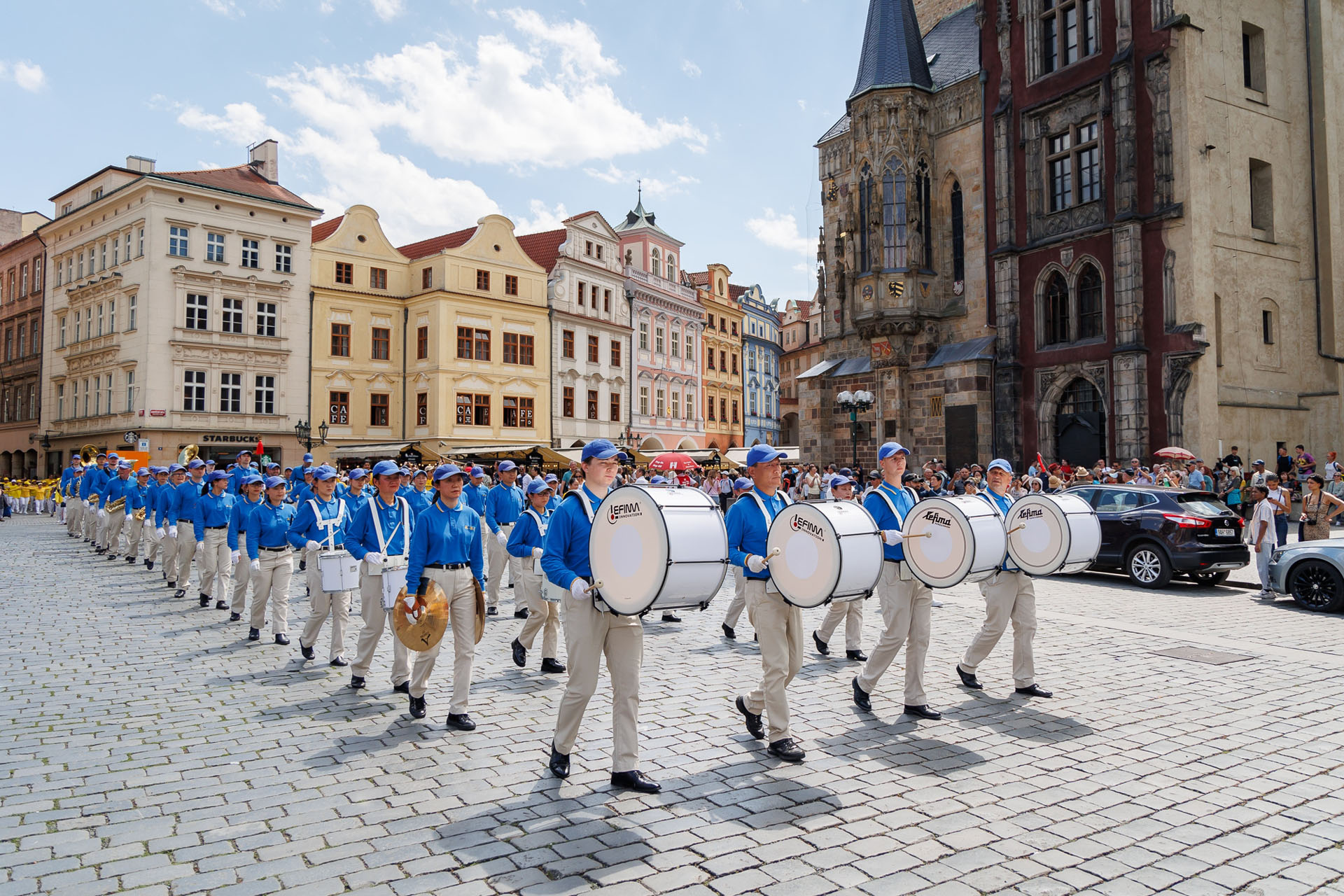 游行队伍从城堡广场出发,途经著名的查理大桥(Charles Bridge),穿越古城区铺有石板路的大街小巷,最后到达老城广场(Old Town Square),继续定点演出。