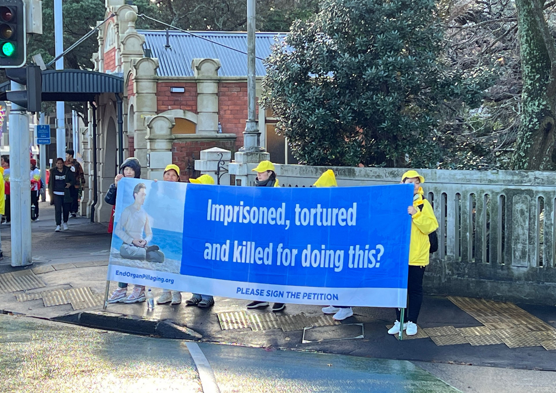 他还说:“你们有权利在这里抗议,这些中共的人企图阻止你们抗议,这是不应该的,尤其是不应该在新西兰发生。而你们(法轮功学员)很平和,我希望你们继续做你们该做的,这是非常值得的,你们在为正义而战,是在拯救生命、保护生命。如果你们也信神,那么我相信神一定会护佑你们。”