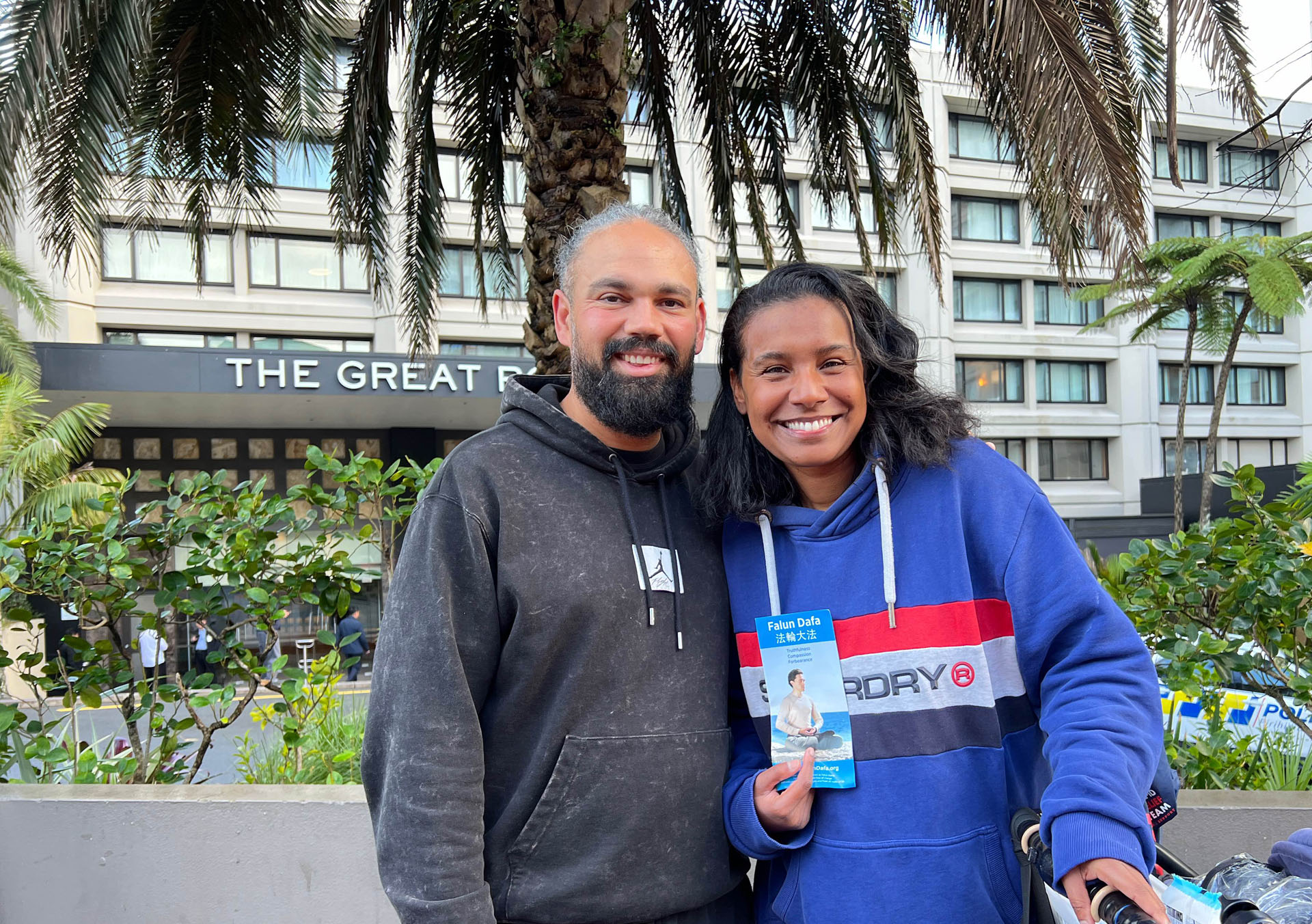 阿奇·迪苏沙(Arkie de Sozua)和他妻子玛丽亚(Maria)来自西班牙,在新西兰工作,路过法轮功学员抗议的现场时,他们表示他们都很清楚中共迫害法轮功的真相。