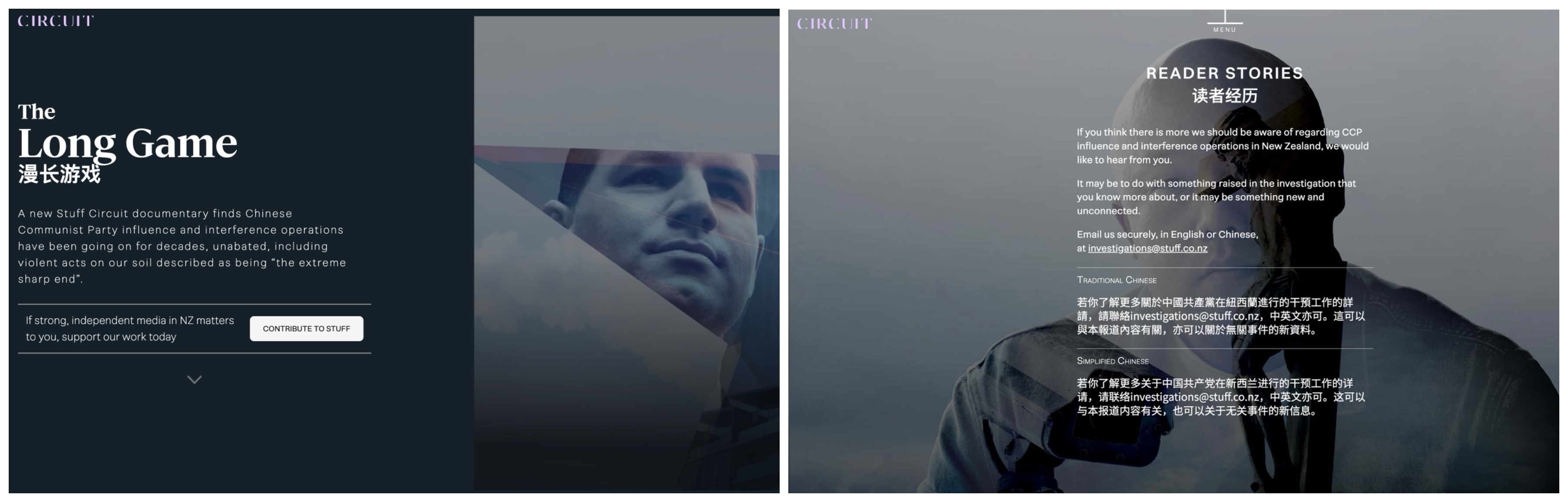 ![]() 图8:新西兰主流媒体STUFF的秒的调查英文纪录片以及中英文征集中共干預详情。 |