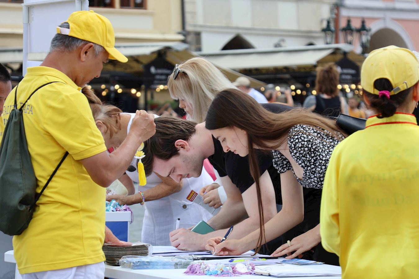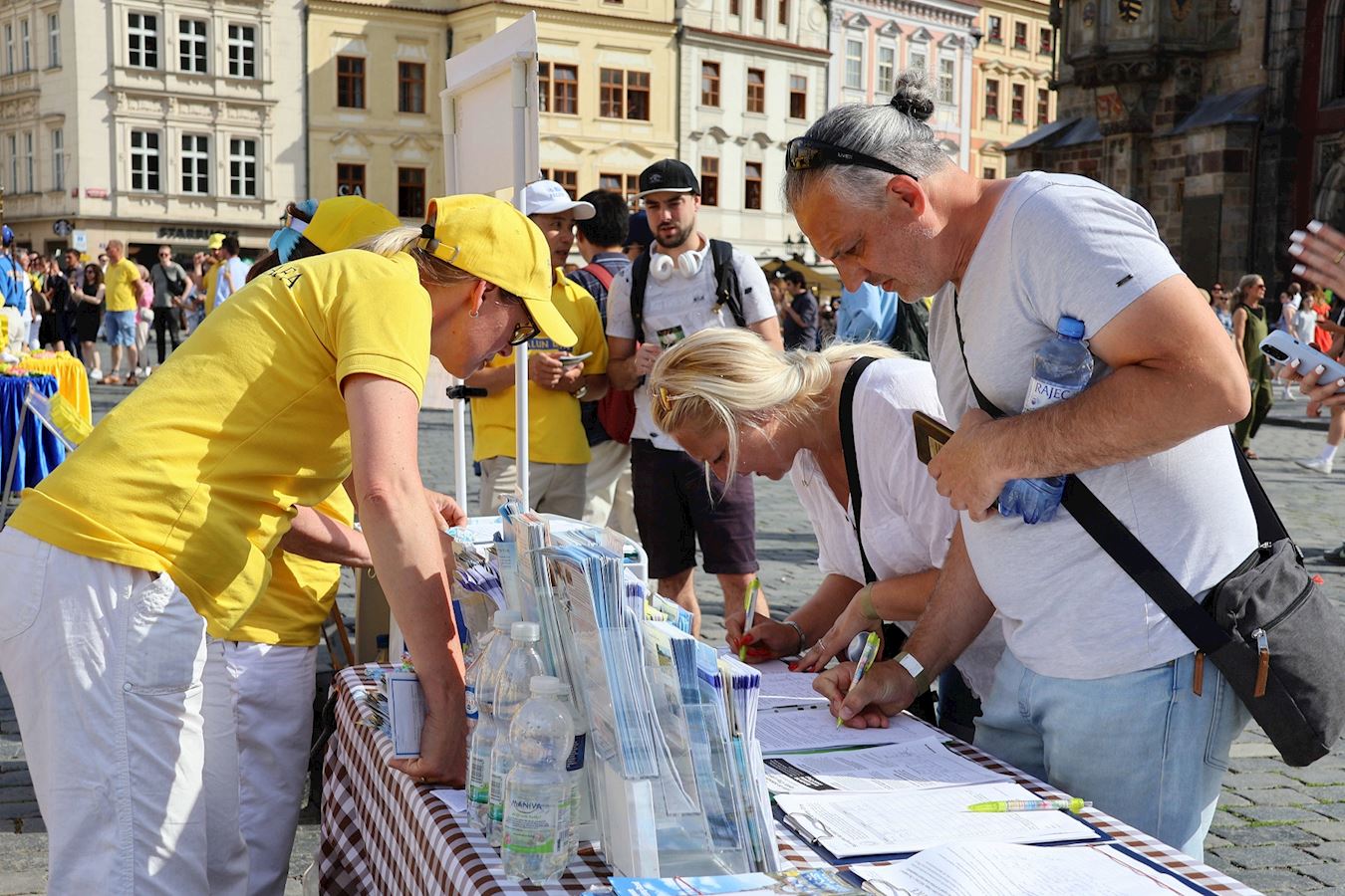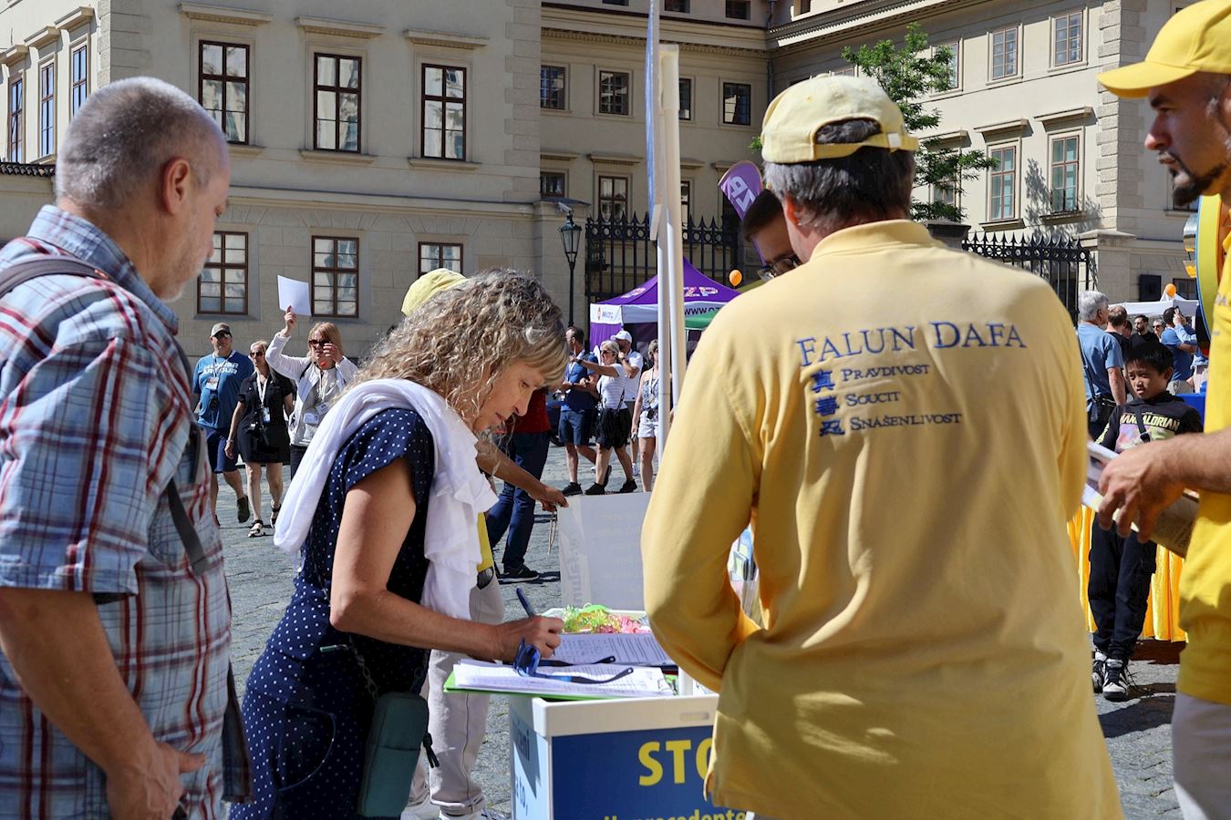 有些路人第二天,六月九日,在老城广场(Old Town Square)看到天国乐团及法轮功学员的演出后,想到前一天看到的游行,当即决定签名支持,还让朋友都一起来签名。他们希望能帮助结束对法轮功学员的迫害。