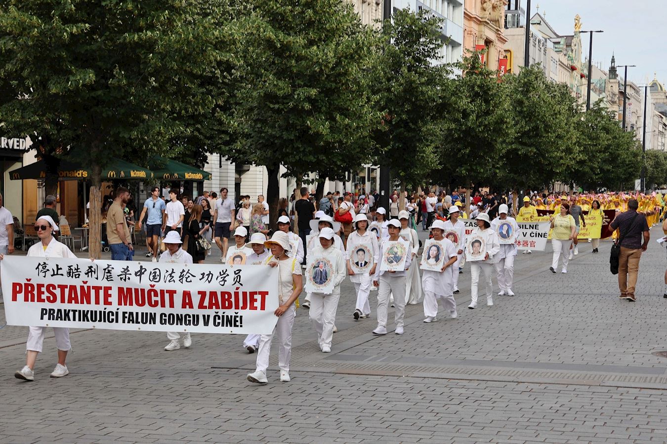 ![]() 图8:第二段游行环绕市中心,在瓦茨拉夫广场也有演讲,让人知道此行的目的,是为了展现大法的美好及揭露中共迫害法轮大法的罪刑。 |