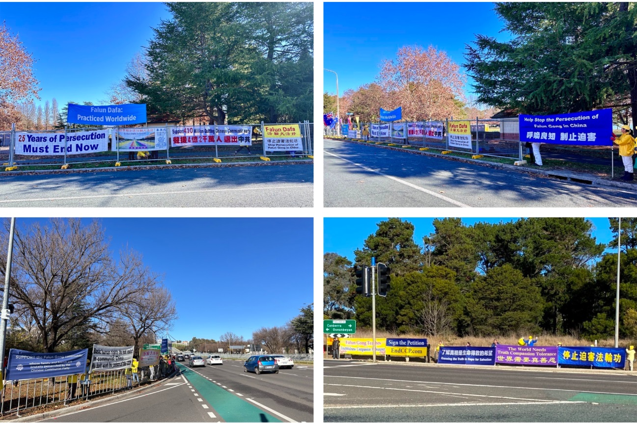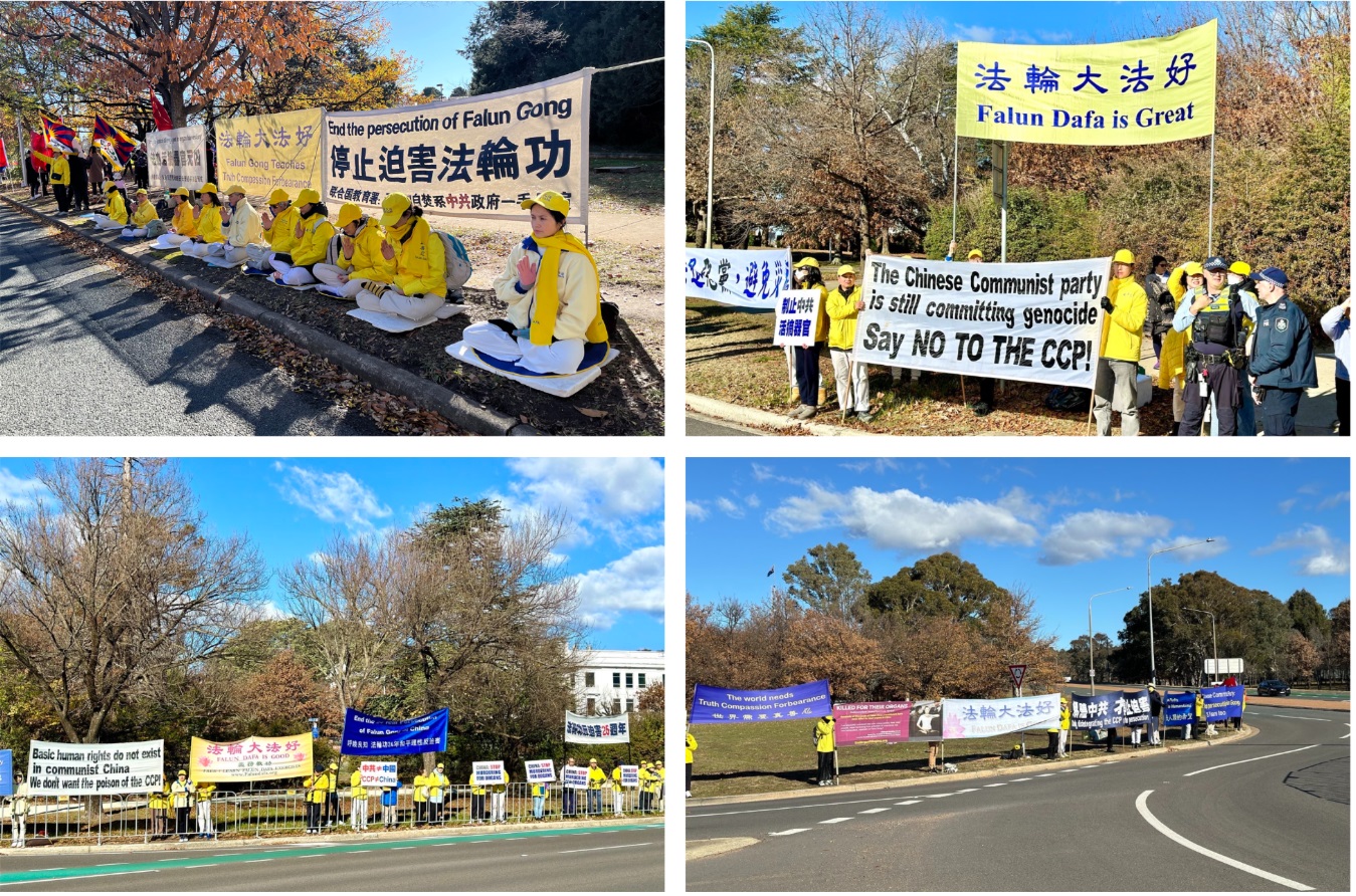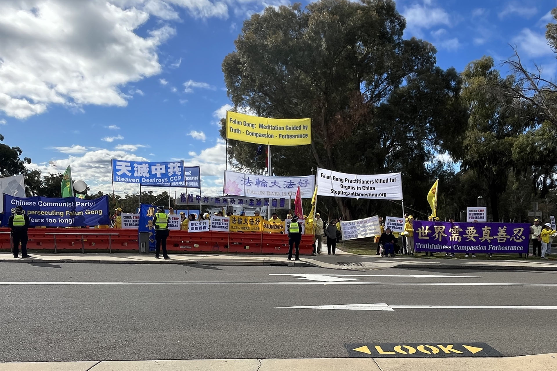 六月十七日,澳洲多个团体在国会大厦周边,呼吁澳洲政府将人权置于经济利益之上,制止中共迫害。当天,法轮功学员一如既往以和平方式,抗议中共持续至今已有二十五年的残酷迫害,要求中共立即停止对中国大陆法轮功学员的杀戮。