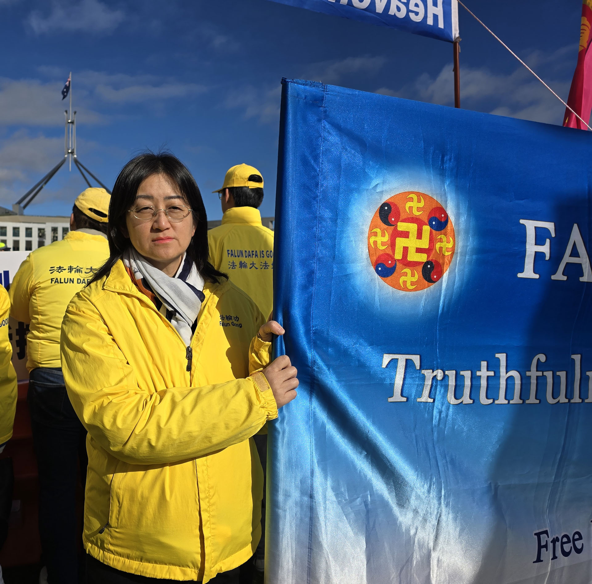 澳洲法轮大法学会会长赵博士(Dr Lucy Zhao)表示,“我们来到这里是希望澳洲政府能够对中共代表团提出应该停止迫害法轮功的问题。同时我们也希望传达我们的诉求,就是对法轮功持续了二十五年的迫害应该立即停止,所有被关押的法轮功学员应该立即被释放,也包括还在中国还在遭受迫害的澳洲法轮功学员的家属。”