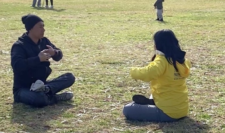 这位藏人还表示,经常看到法轮功学员在公园等地炼功,于是,借此机缘想请法轮功学员教他功法。一位学员立即帮助他在手机上找到法轮功师父的教功录像以及法轮功书籍,然后开始现场教功。