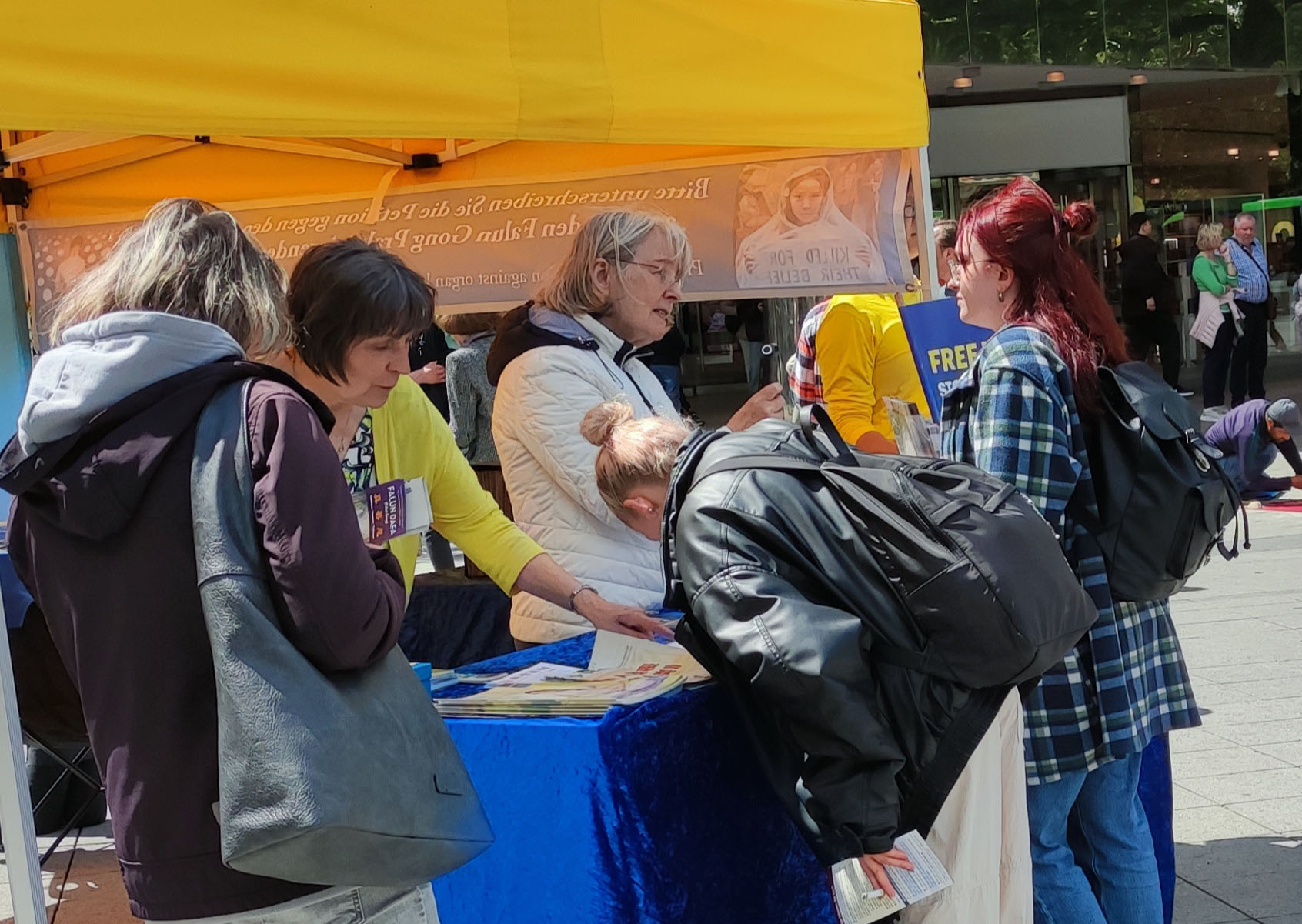听到中共活摘法轮功学员器官的罪行时,很多人表示震惊。他们立即在给德国政府的请愿书上签名,要求政府公开反对中共的迫害。
