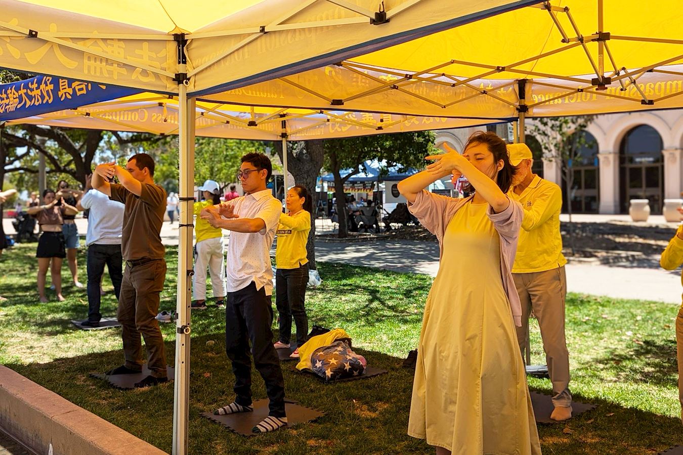 参加当天活动的法轮功学员表示,虽然当天很热,没有象往常一样人潮不断,但很多经过画展的民众很认真地看画,并找法轮功学员了解真相,还有不少人和学员一起学功。