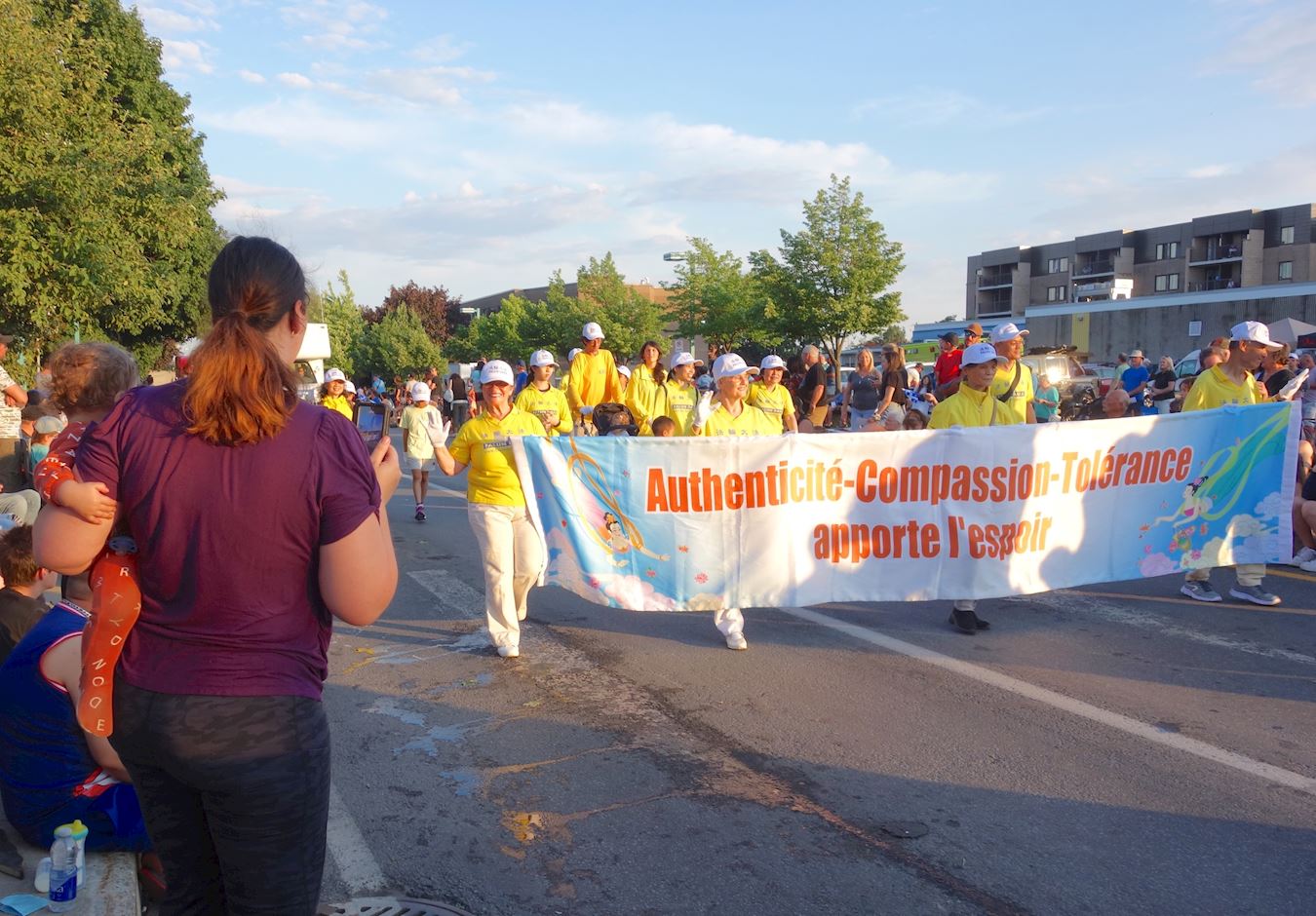 据庆祝活动组委会主席米歇尔·布吉(Michel Bougie)先生介绍,今年大游行的主题是“家庭”,共有七十八个团体参加。他表示,法轮大法团体是游行大家庭中的一员,人们年年都期待他们的到来。