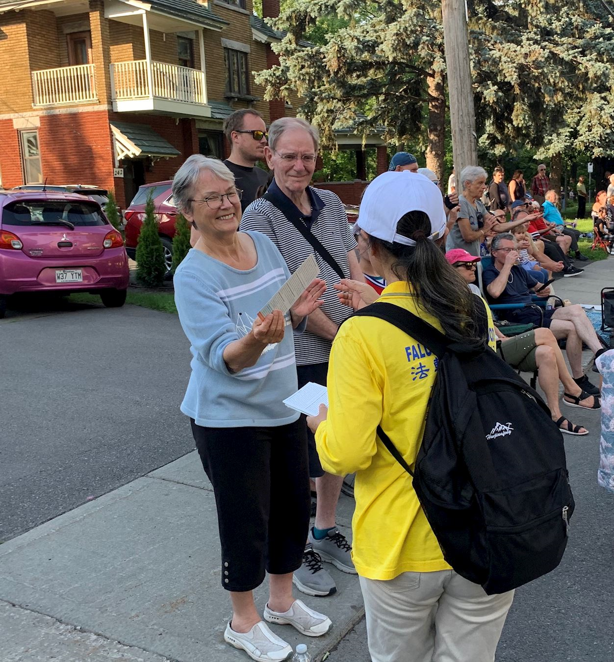 “大家都喜欢他们,天国乐团的音乐很棒,演奏很棒,功法的动作也很棒,乐团的服装很漂亮,和我们魁北克旗帜的颜色一样”,他强调,特别是队伍带来的真、善、忍理念,“这正是人们如此喜欢他们的原因。每年游行后,大家都说期待他们明年再来。”