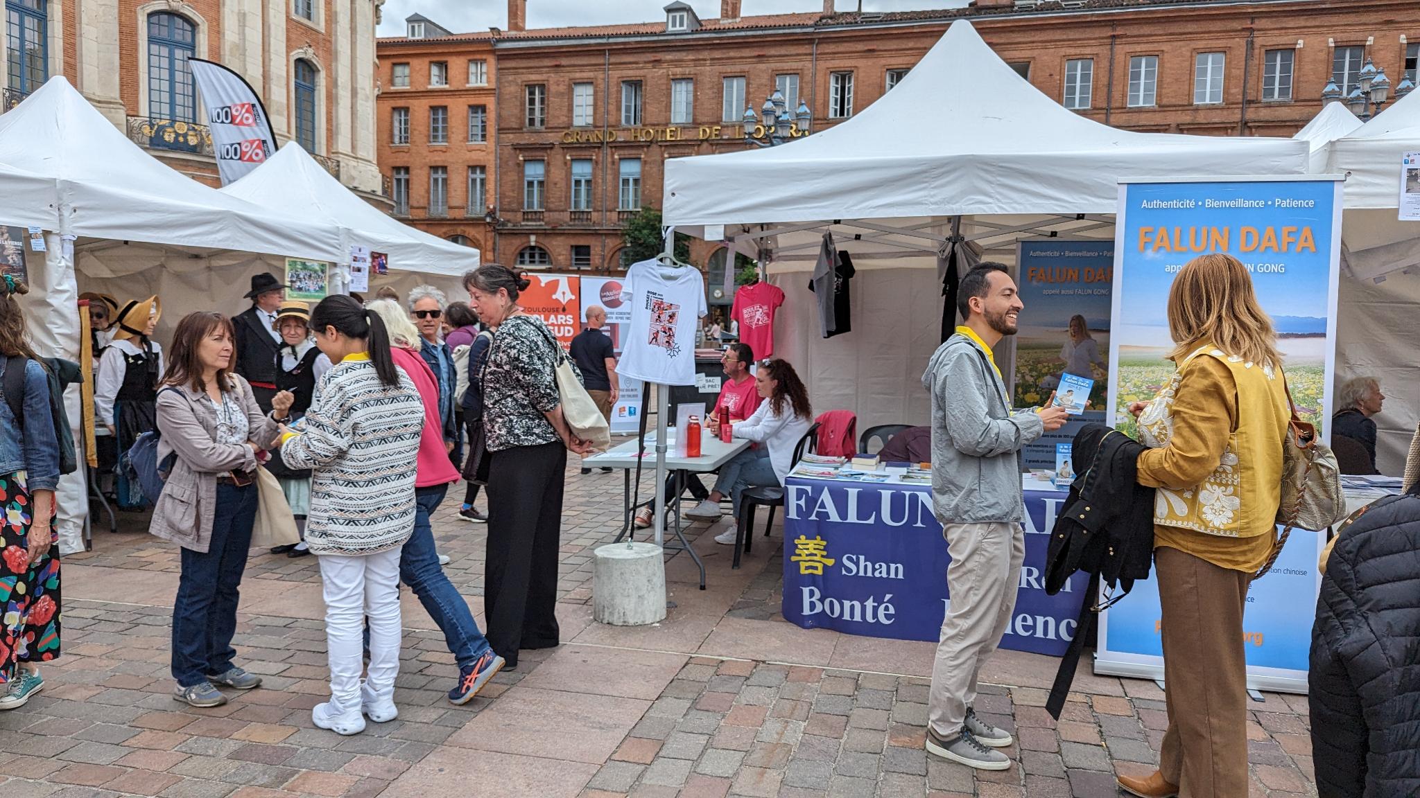 二零二四年六月十五日星期六,法国图卢兹(Toulouse)法轮大法学会参加了图卢兹市政府举办的社团庆典活动,在图卢兹市的中心广场—卡比托广场(Place du Capitole )上向民众介绍法轮功。两个地区的活动让更多的人了解了法轮功真相。