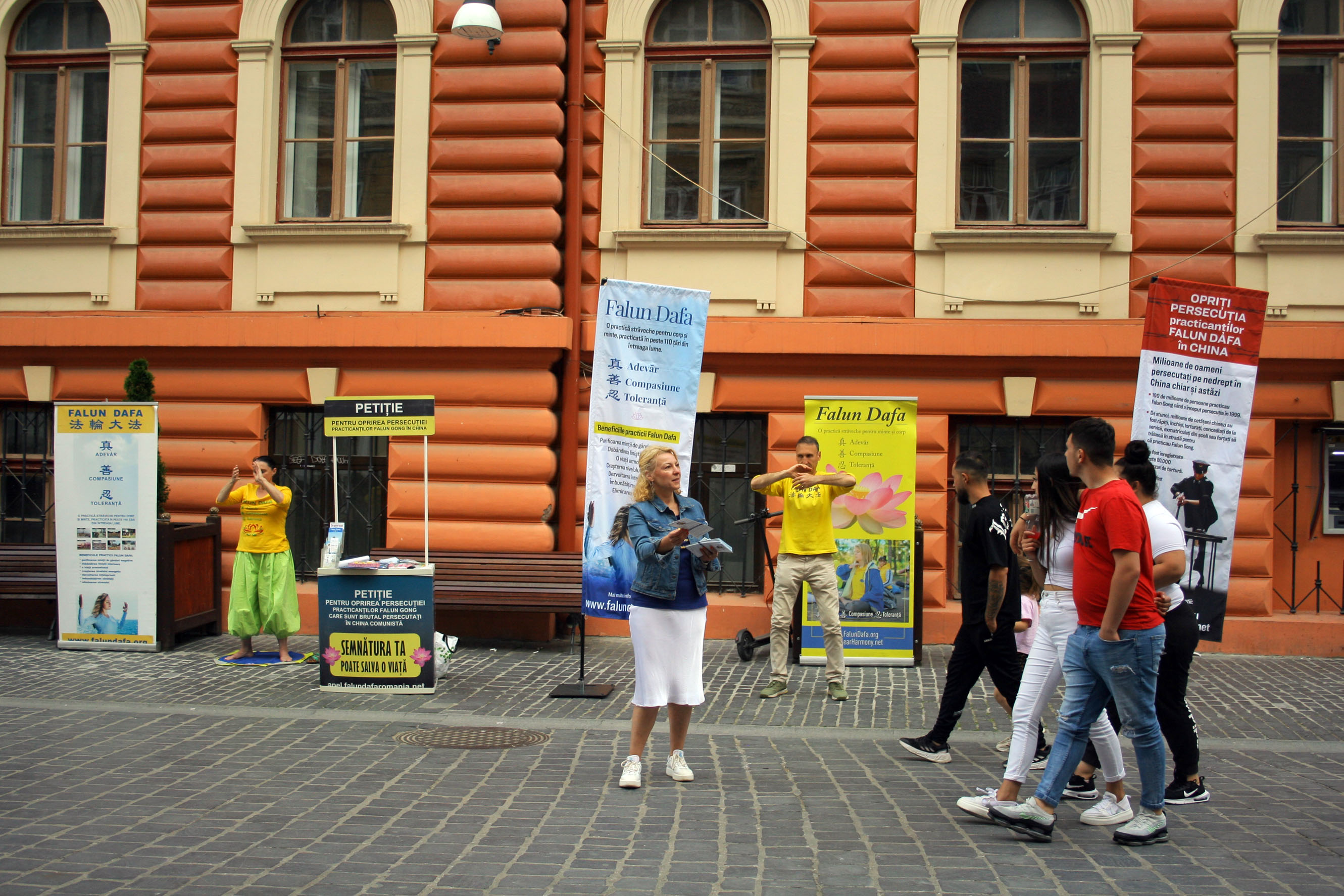 罗马尼亚裔美国公民斯特凡妮娅·特奥多鲁(Stefania Teodoru)路过法轮功真相展位时,停下脚步与法轮功学员交谈。她说自己在美国看过两次神韵演出,了解到中共对法轮大法的迫害。