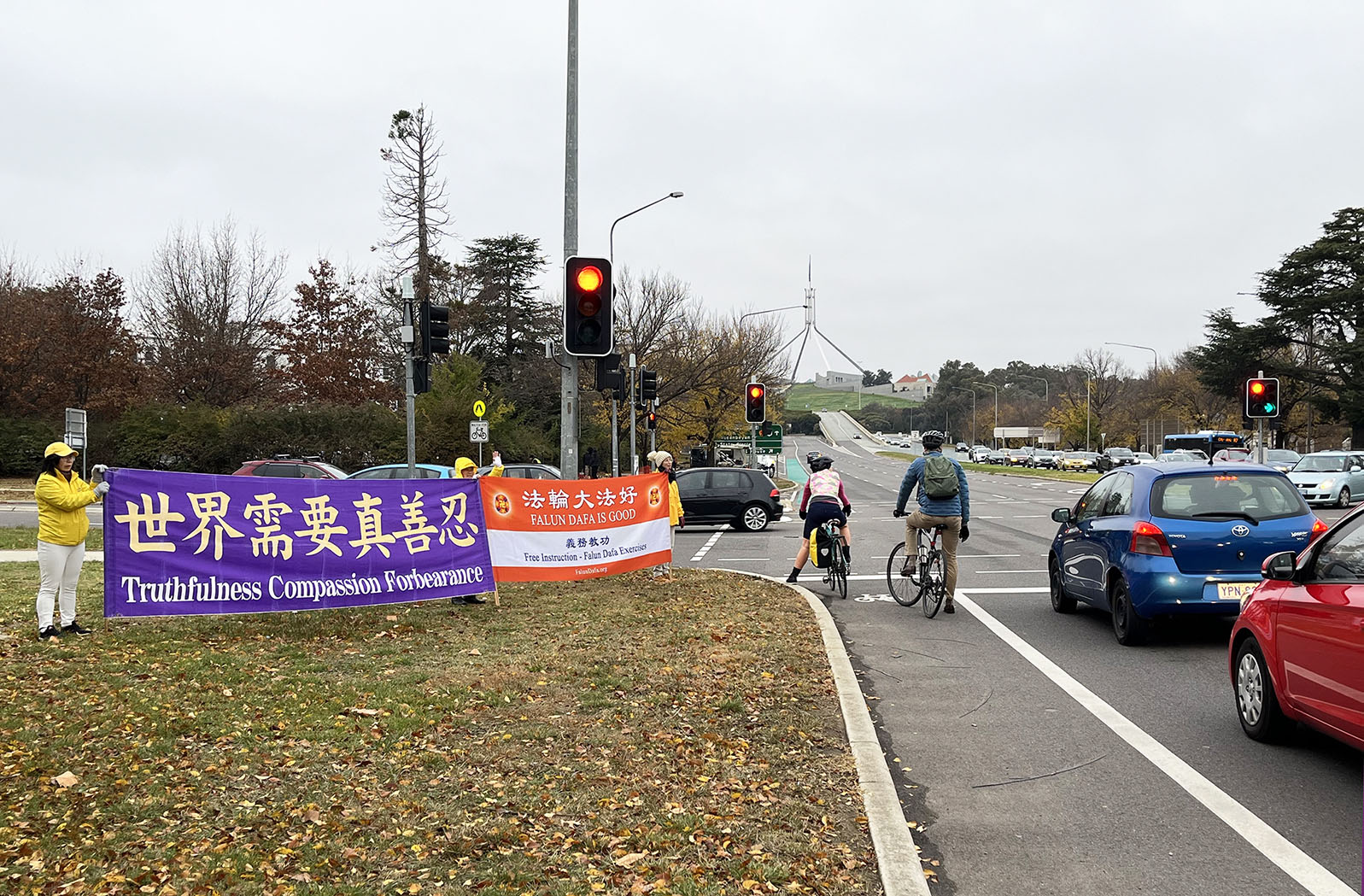 ![]() 图5~7:来自全澳各地的部分法轮功学员在澳洲首都堪培拉通过各种方式向澳洲各界传递反迫害真相,图为法轮功学员在市中心主干道展示真相横幅、街头征集反迫害签名。 |