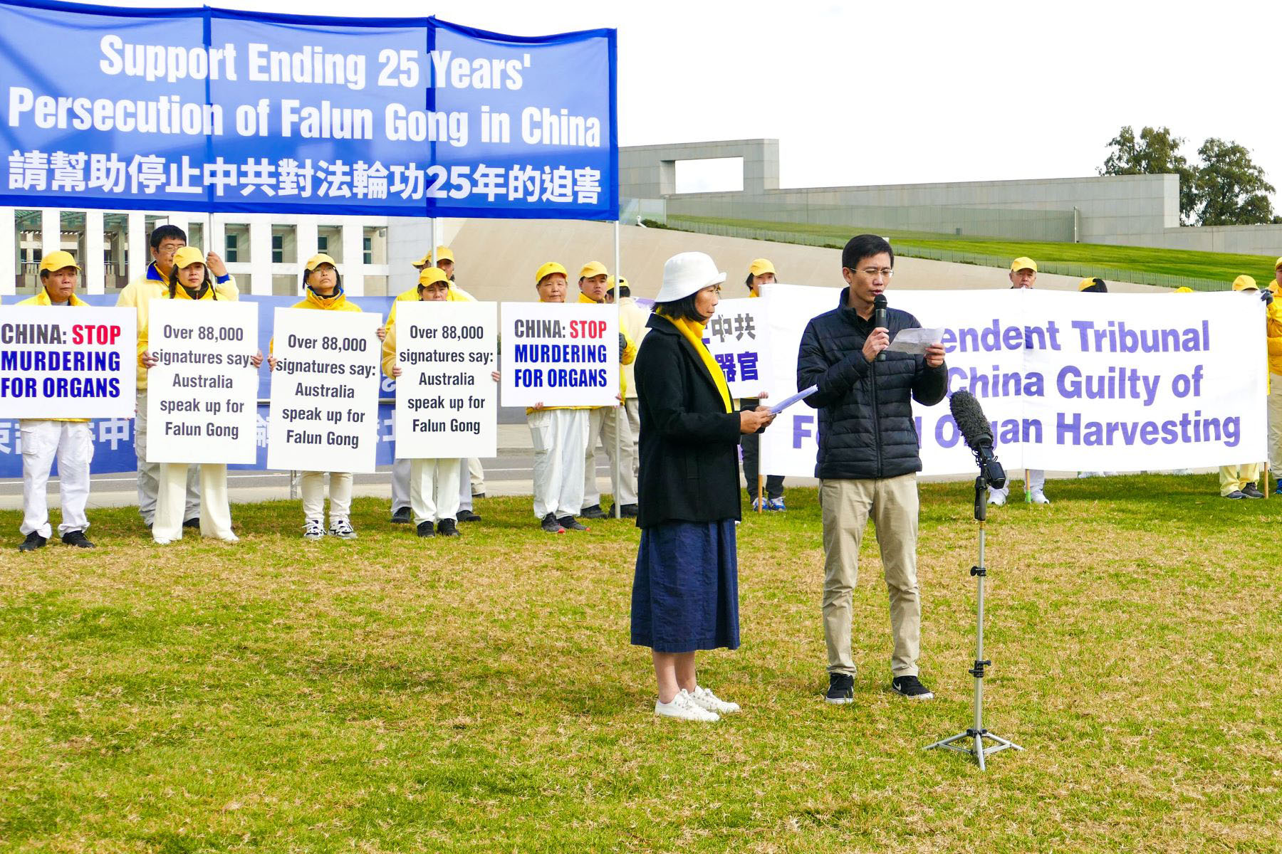 集会当日,还有多个澳洲家庭成员发言,他们在中国的亲人因修炼法轮功遭受中共迫害,被非法抓捕、判刑、酷刑折磨等。他们呼吁澳洲政府帮助制止中共对法轮功团体的迫害,可以早日与亲人团聚。