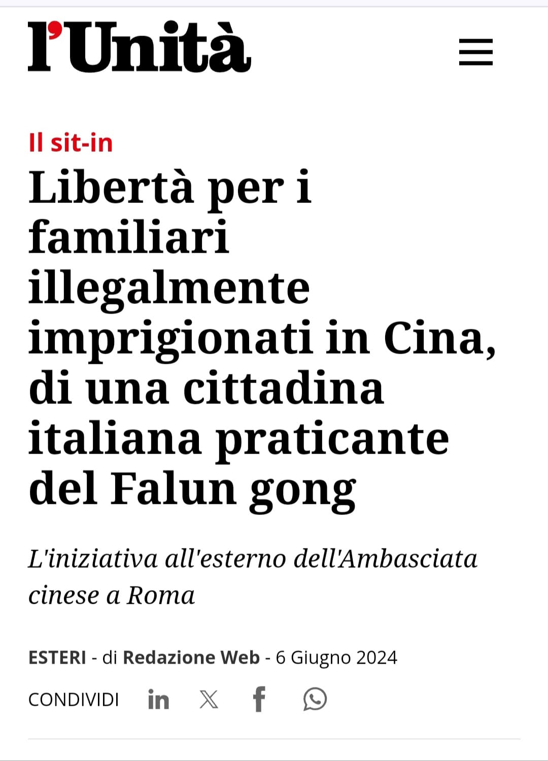 意大利报纸l'unità原文登载了意大利法轮大法学会就此次和平抗议的公开信。