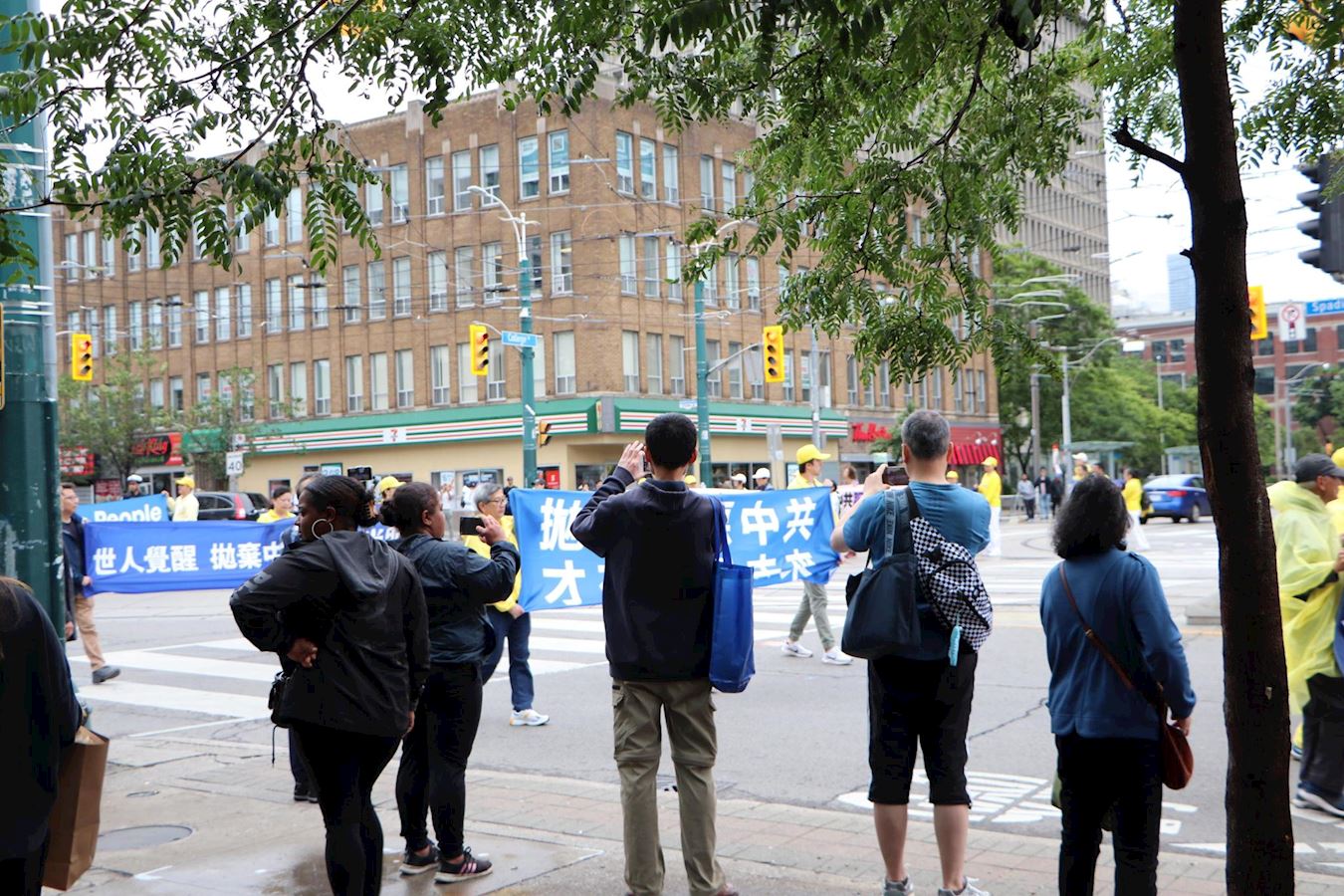 游行活动长达一个半小时,路过的市民与沿街商铺的店主都见证了这一盛况。他们被壮观的游行队伍所震撼,有人从店里跑到路边用手机拍照录像,有人主动询问游行的内容与背景,许多人向游行队伍竖起大拇指,并说:“太棒了!支持你们!”值得一提的是,有中国大陆背景的市民接过学员递来的真相传单,认真听完学员讲述中共迫害法轮功的真相后,立刻选择退出加入过的中共党、团、队组织。