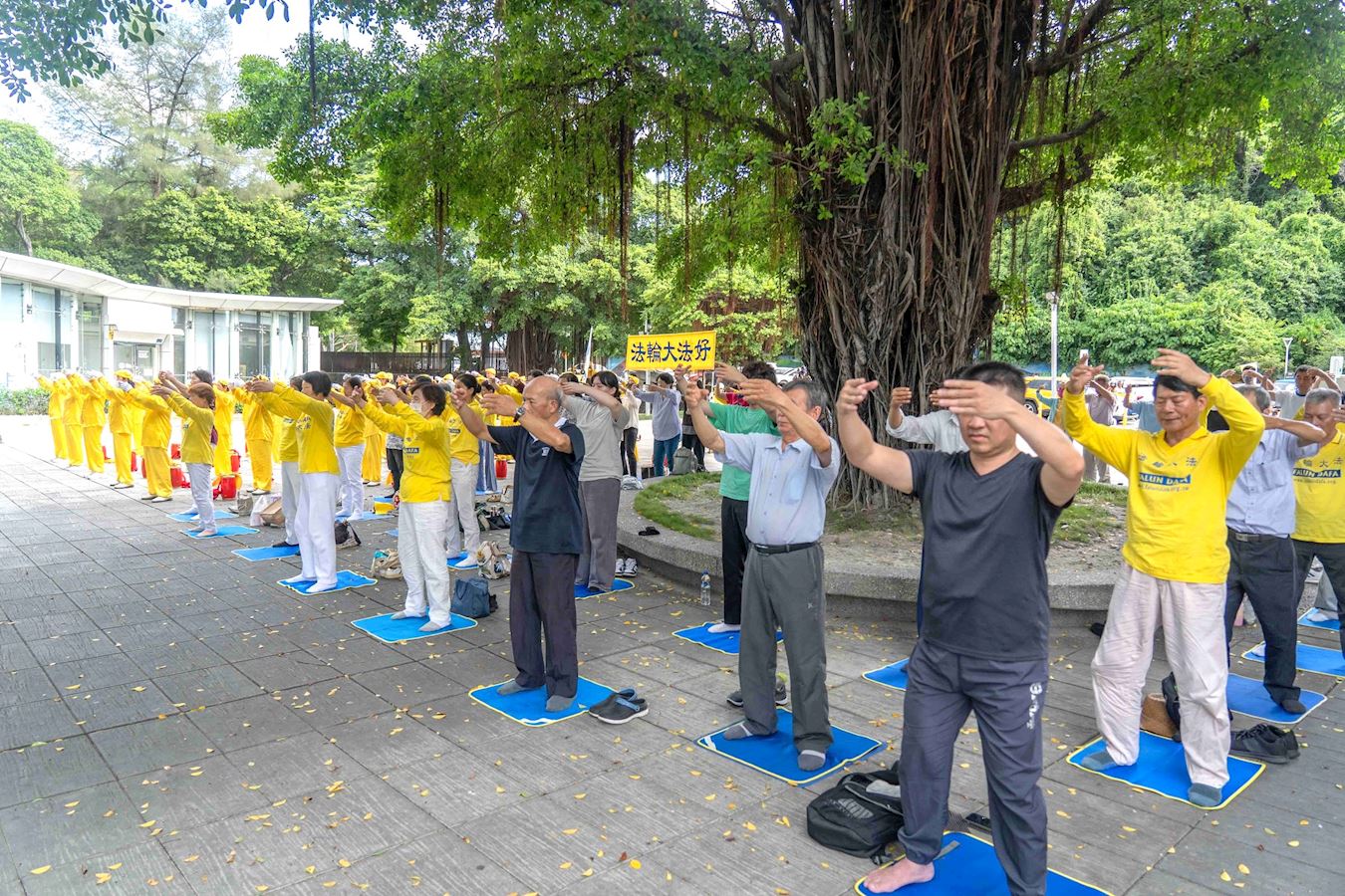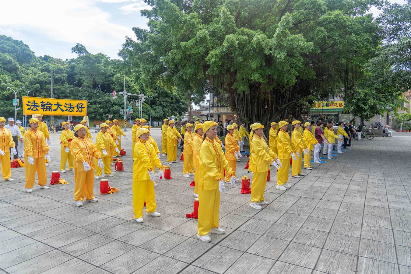 ![]() 图1~4:二零二四年七月七日下午,高雄部分法轮功学员来到莲池潭景点弘法传真相,活动包括腰鼓队表演和五套功法演示,祥和的炼功场面吸引不少民众驻足观看。 |