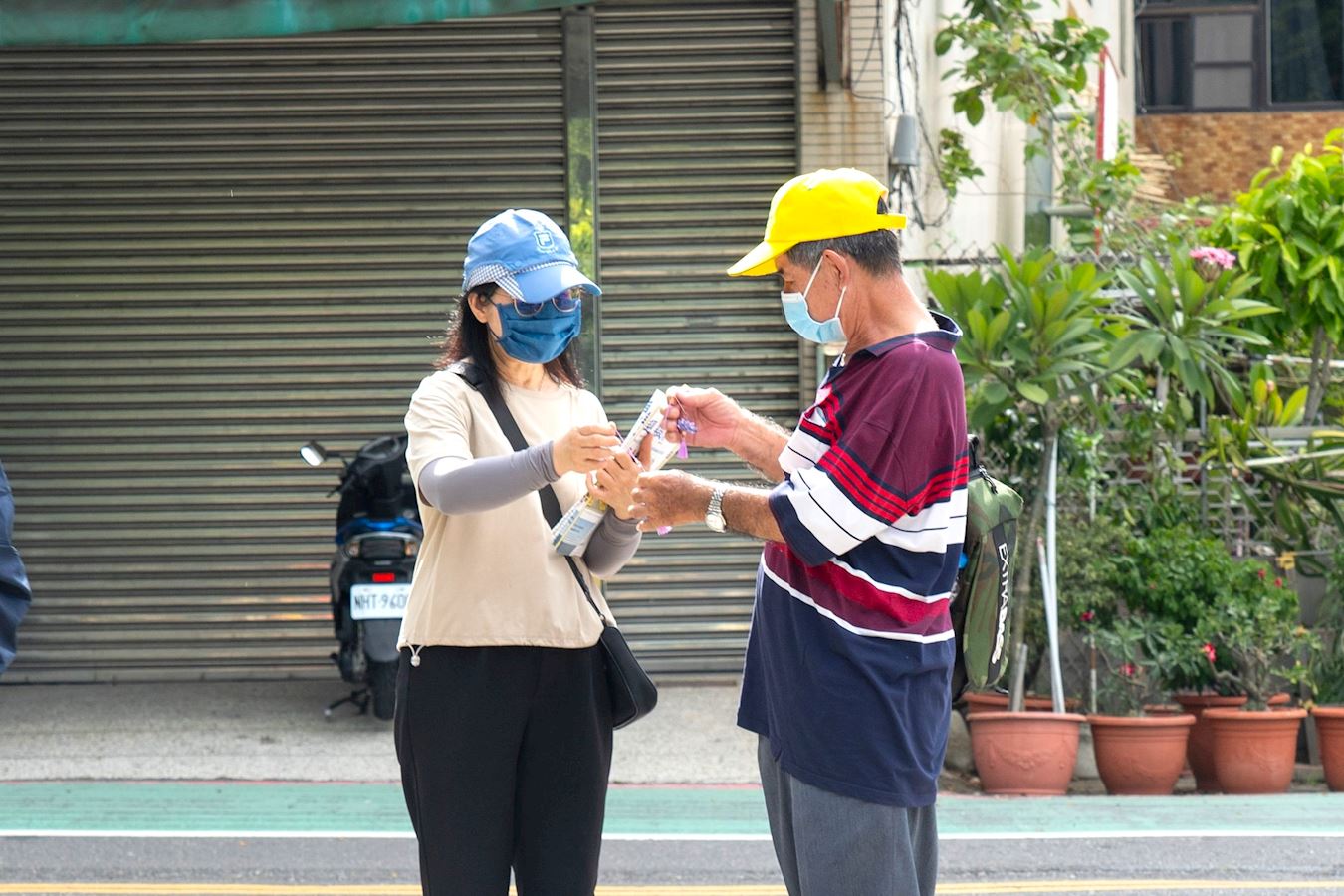 ![]() 图17:林先生与妻子接了学员传递的真相传单,开心表示支持法轮功。 |