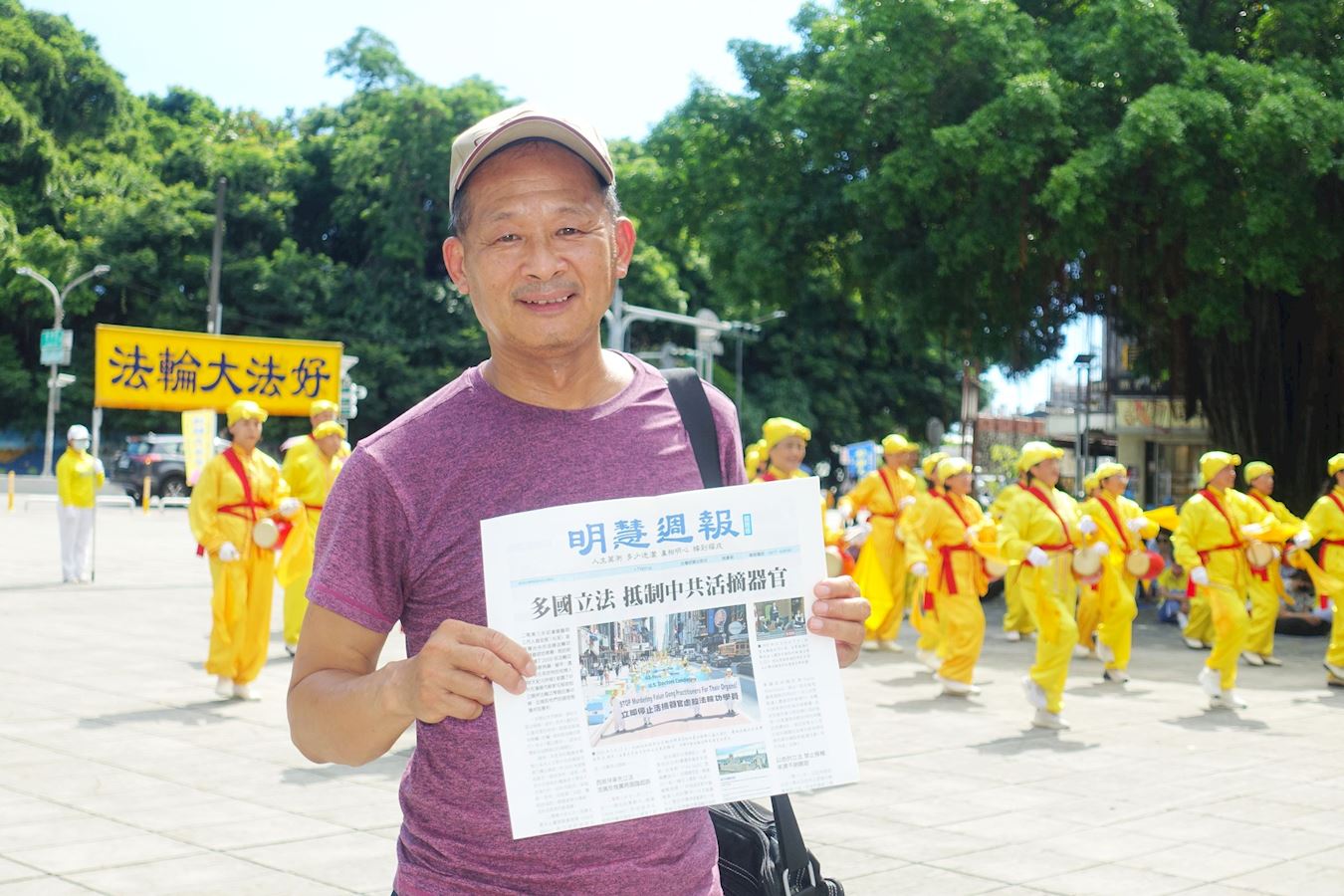 原自营餐饮事业的林先生,当天与妻骑车经过莲池潭,也被法轮功弘法活动吸引。接下真相传单后,他郑重表示,“当年‘六四’事件,真是太残忍了!这件事,早已证明中共就是极权独裁国家。”