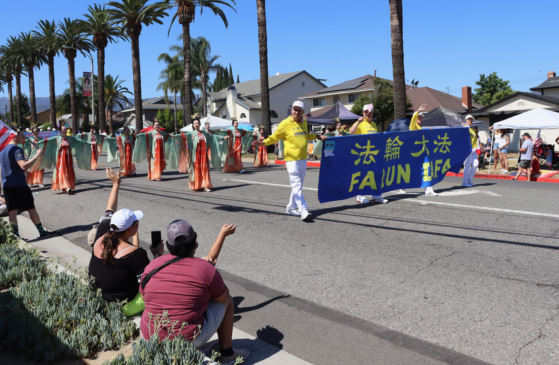 ![]() 图1~3:法轮功队伍参加南加州科罗纳市国庆游行 |
