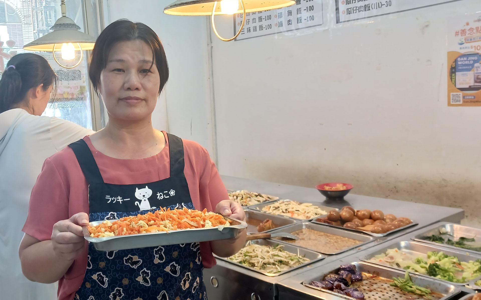 当然,还会有许多意外突然发生,例如当客人不小心将整个菜打翻在地时,巧芳也会赶紧过来收拾,并心平气和地说:“掉了就掉了没关系,你去挑你的,我来整理,以免大家踩到滑倒。”旁边的客人看到后都说:“这个老板娘不一样耶!打翻了还让他重新去拿,东西自己收拾。”