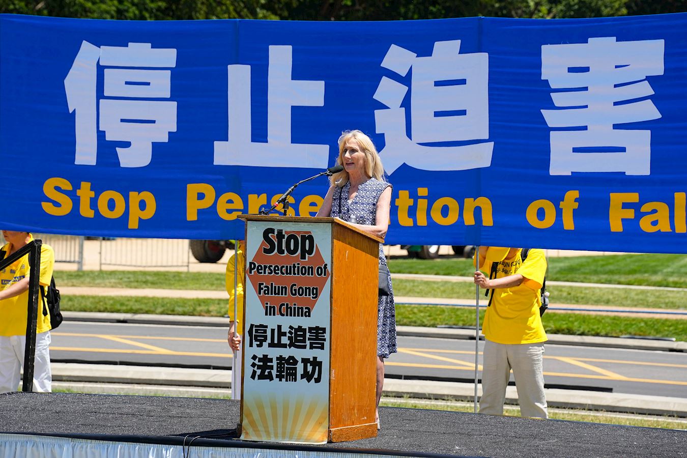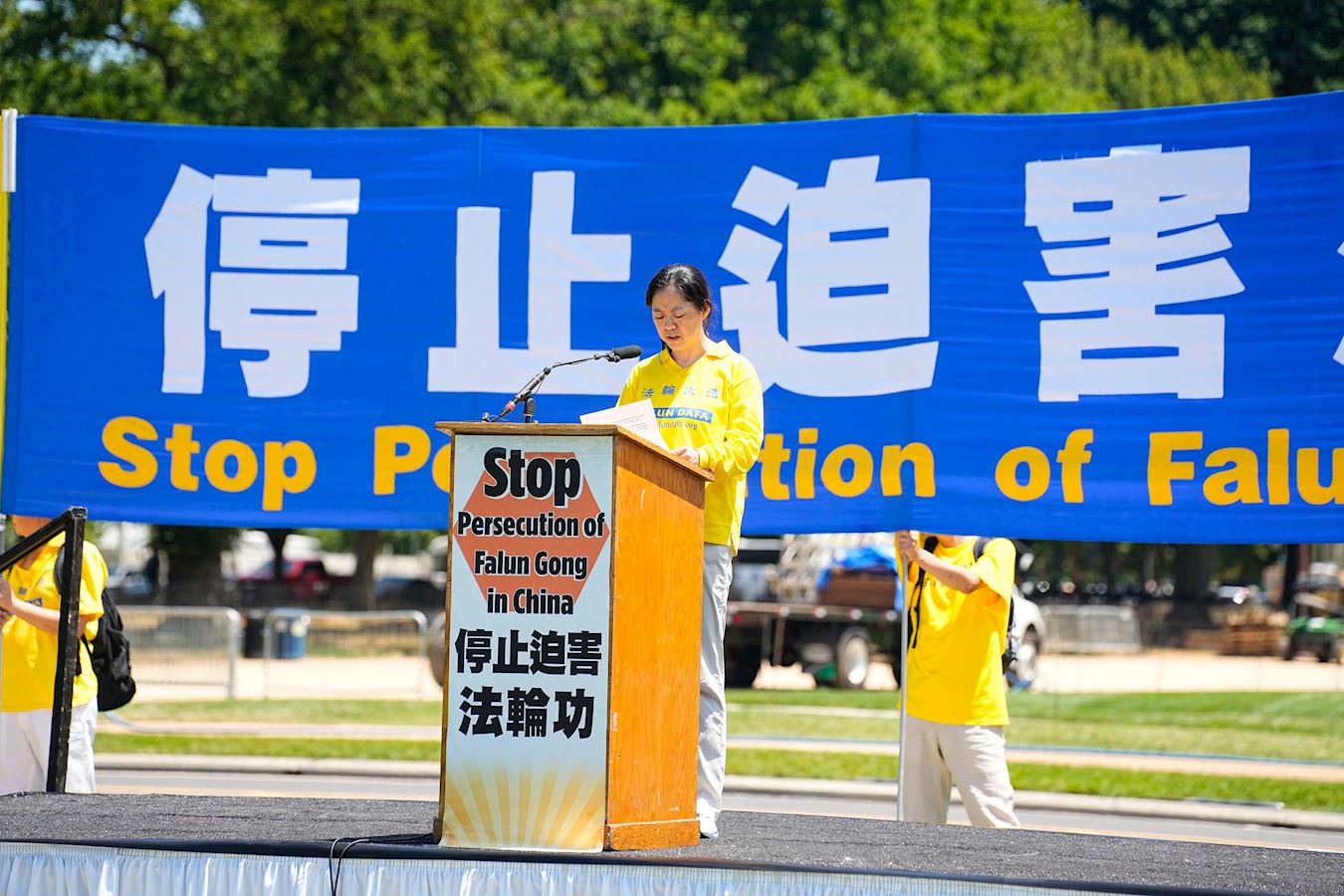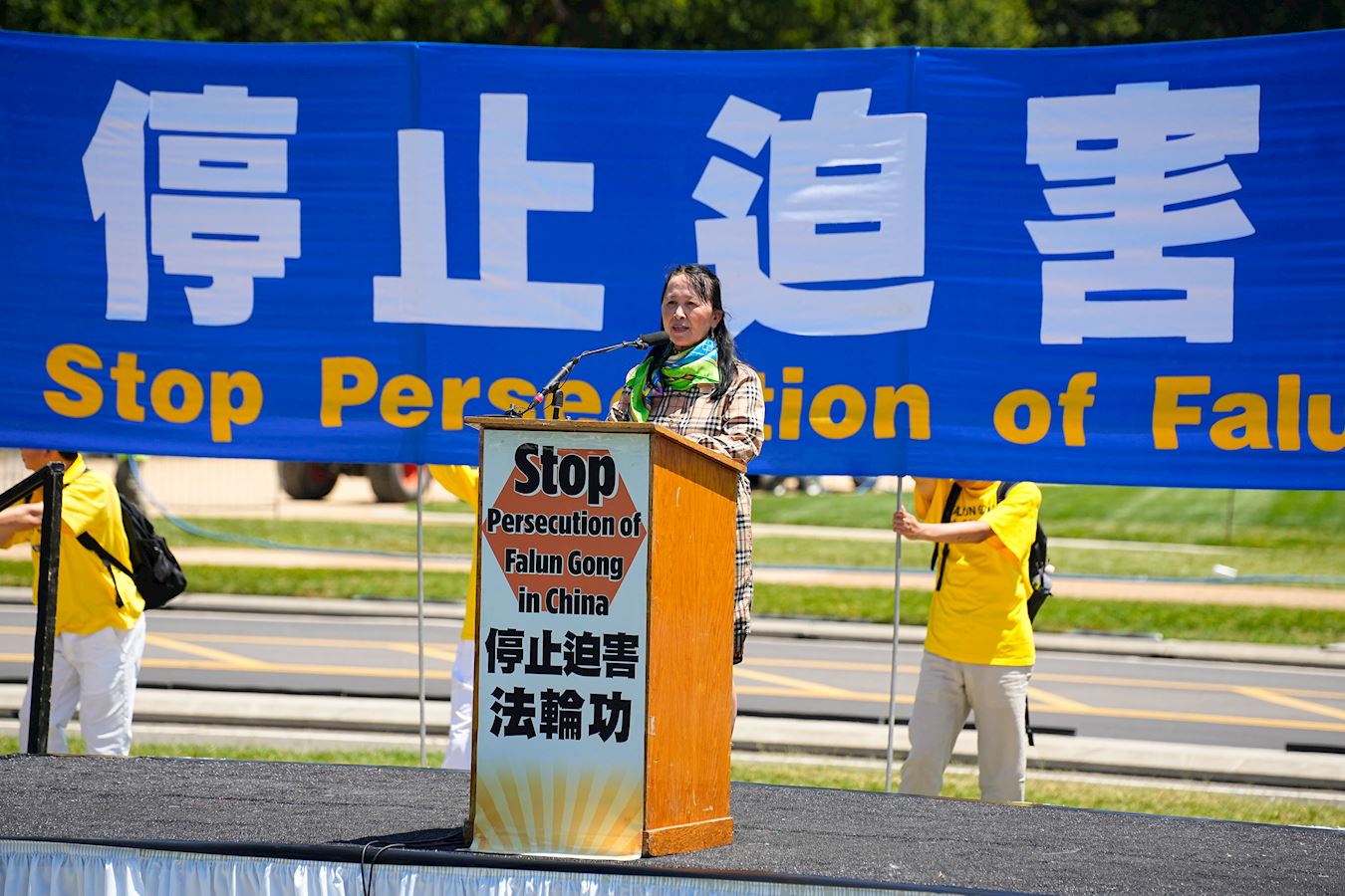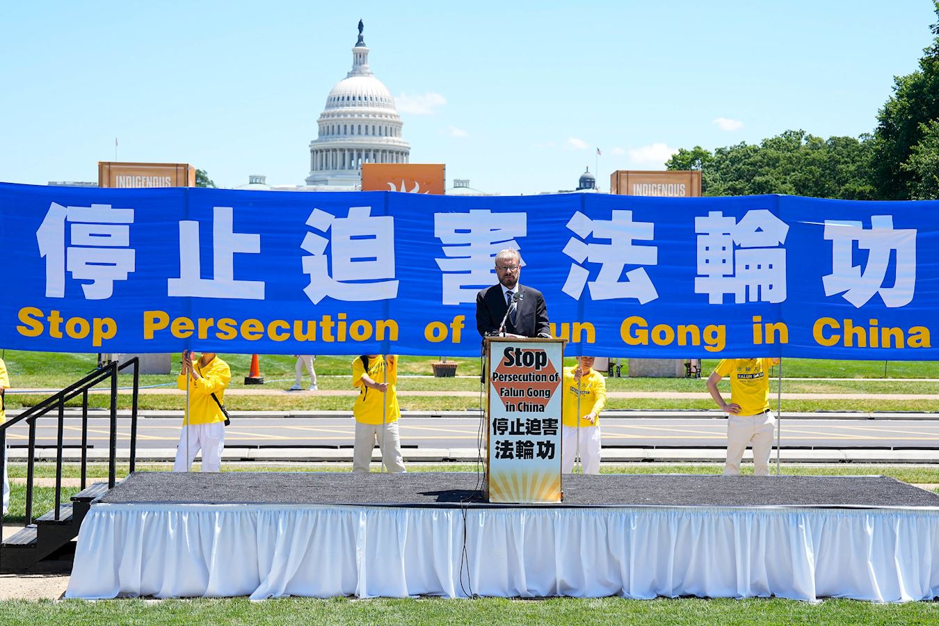 “二十五年来,法轮功遭受了各种可以想象的苦难,我们与你们站在一起。我们与你们的社区站在一起。我们呼吁结束这种镇压,结束酷刑,结束监禁,为法轮功和中国境内所有宗教团体开启一个自由的新时代。”