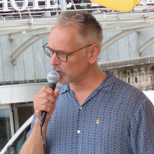 日内瓦州大议会议员塞德里克·让奈雷(Cédric Jeanneret)在现场发言中说:“我是日内瓦州大议会议员。作为人民的代表,我来到这里表达我们对因信仰被压迫的人们的支持。日内瓦是欢迎因信仰被迫害的人们的一座城市。我们感谢你们在这里,生活在人性中,生活在这些价值中,这些价值把我们连在一起。”