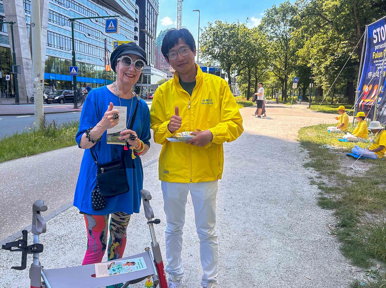 六月二十七日中午,在议会大楼工作的哈斯纳(Hasina Bajraktarevic)女士从办公室走出来,主动找学员交谈,告诉学员,她住在鹿特丹,经常见到法轮功学员在街头讲真相,也体验过炼功动作,希望帮助制止迫害做些什么。