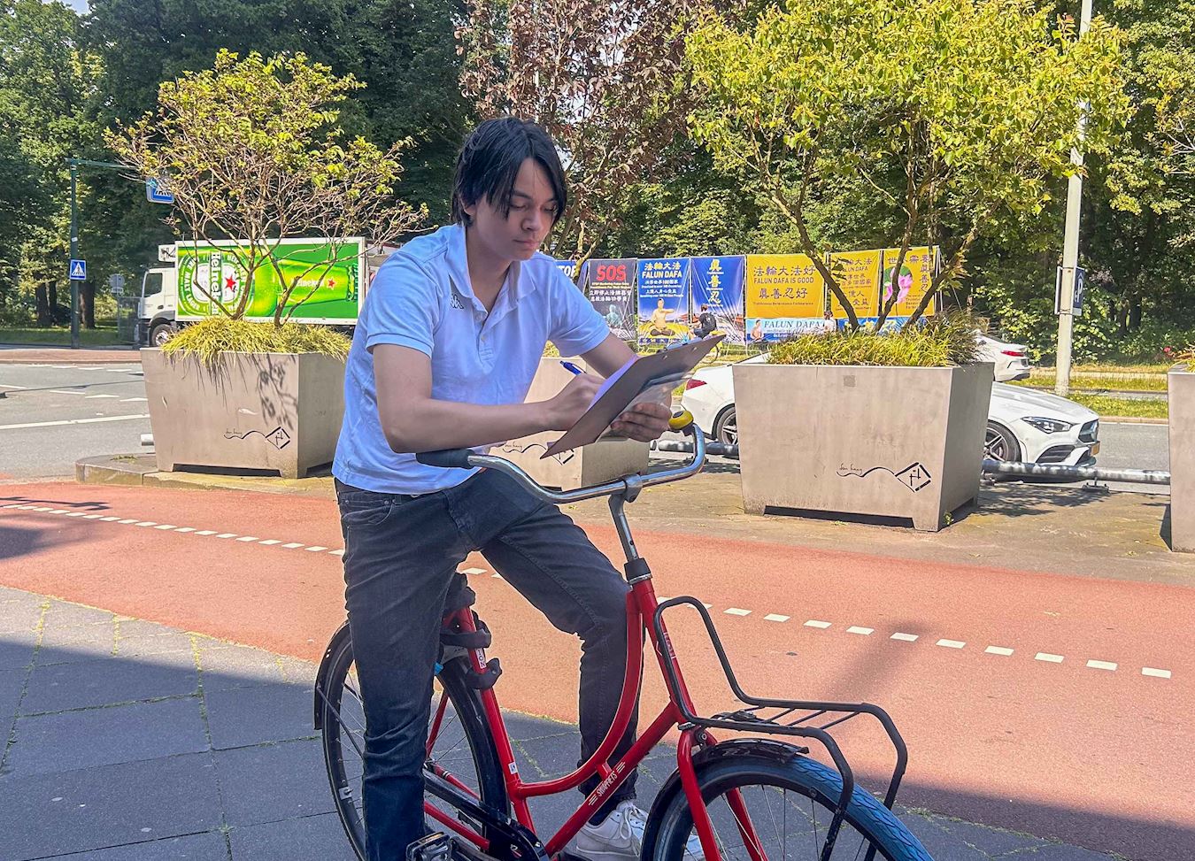 ![]() 图11:骑车青年签名支持反迫害。 |