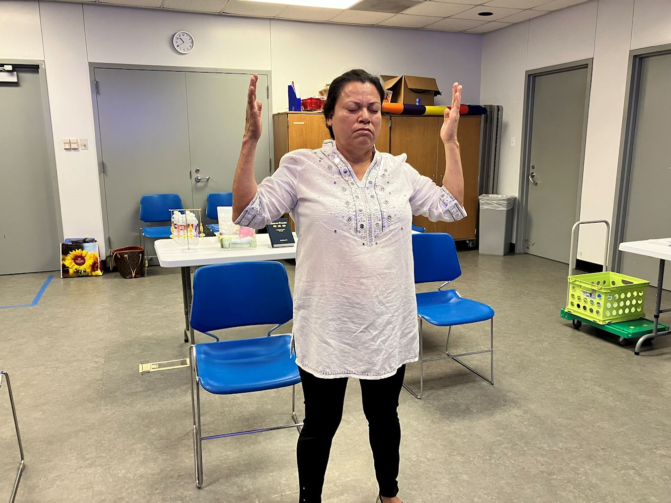 安娜(Ana)女士当天从另一个城市里士满(Richmond)赶来学功。她表示自己在社交媒体上看到法轮功的信息,从而产生了炼功的兴趣。
