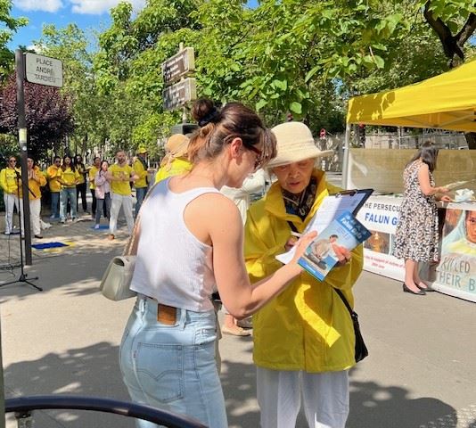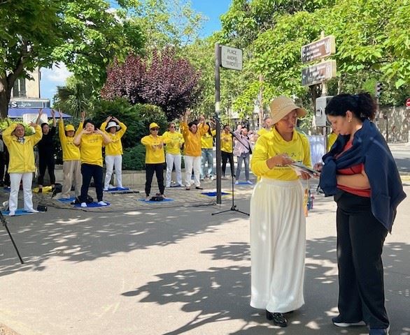 她说:“我在巴黎歌剧院广场也见过他们(法轮功学员)讲述这些事情。这些人实际上是在遭受苦难。”